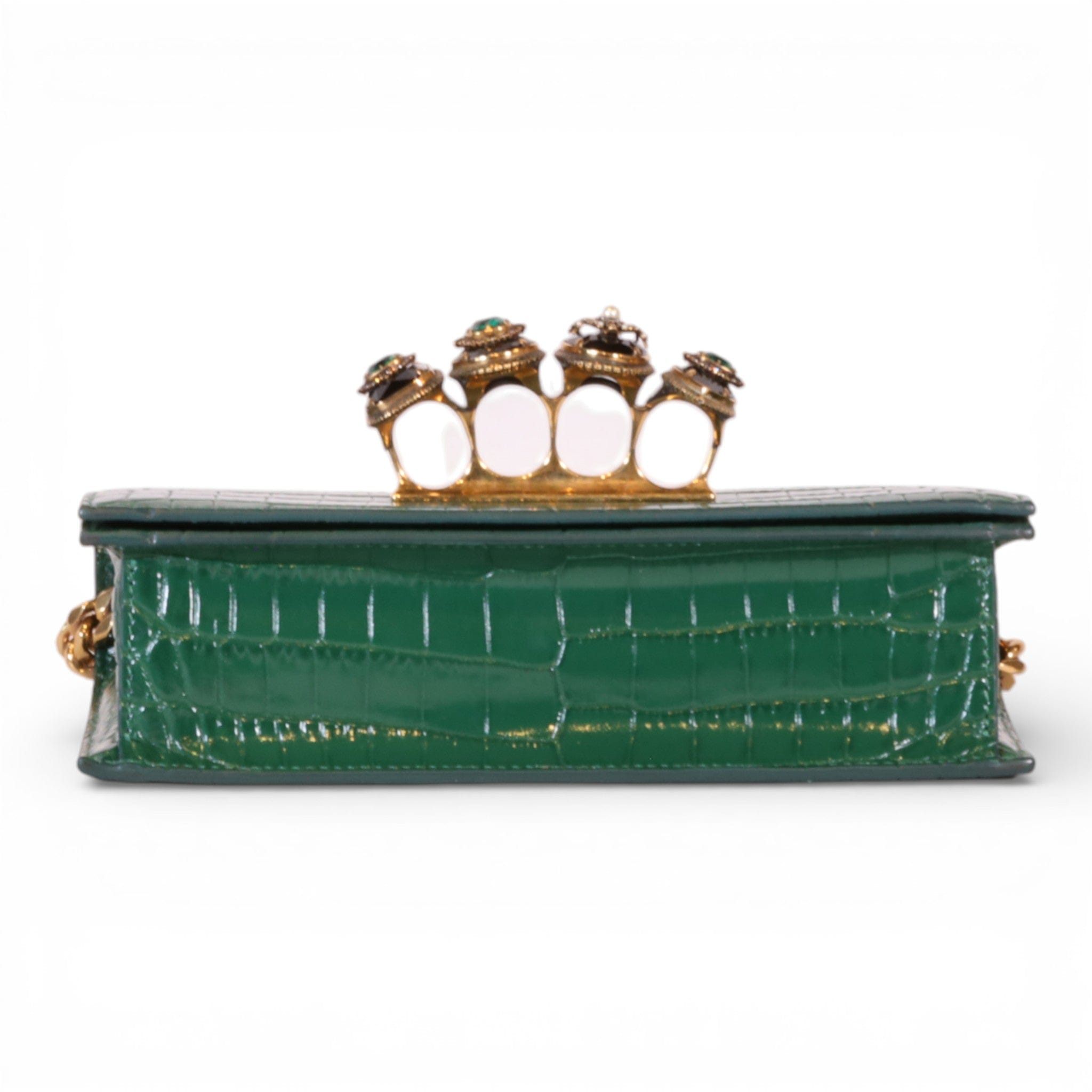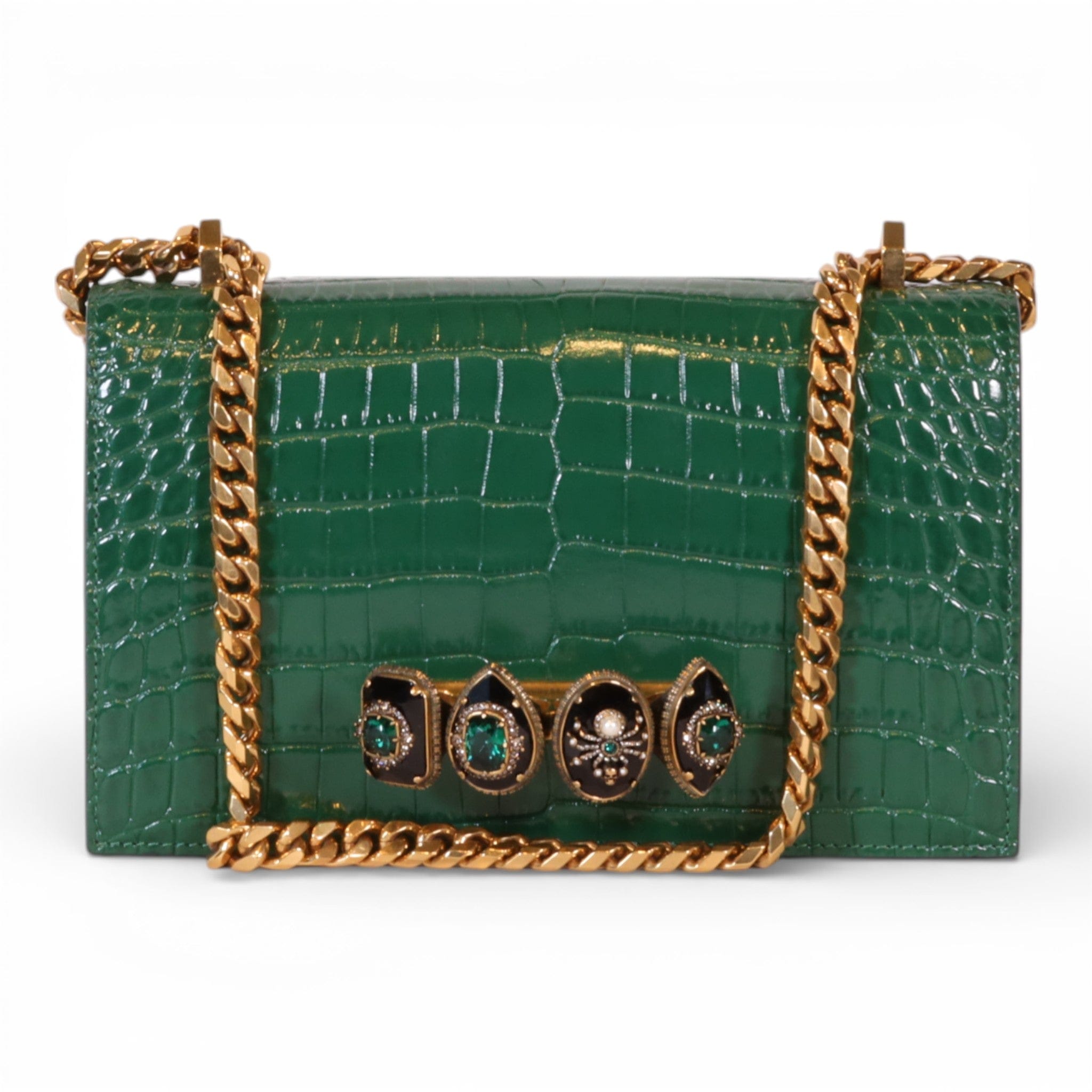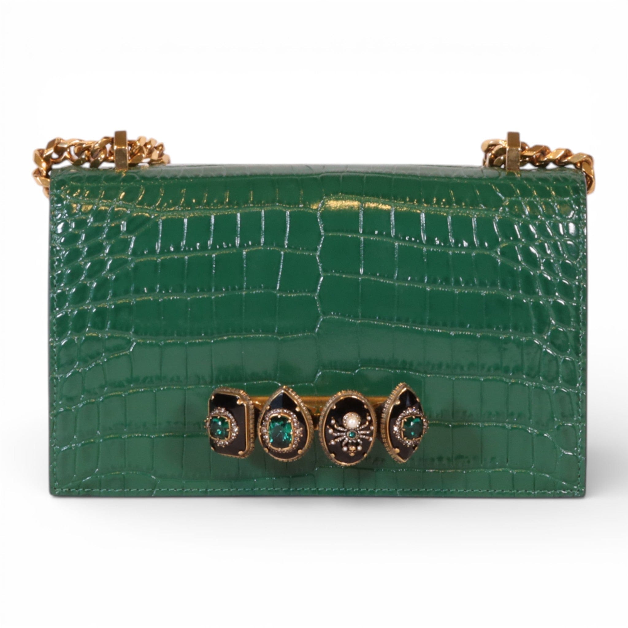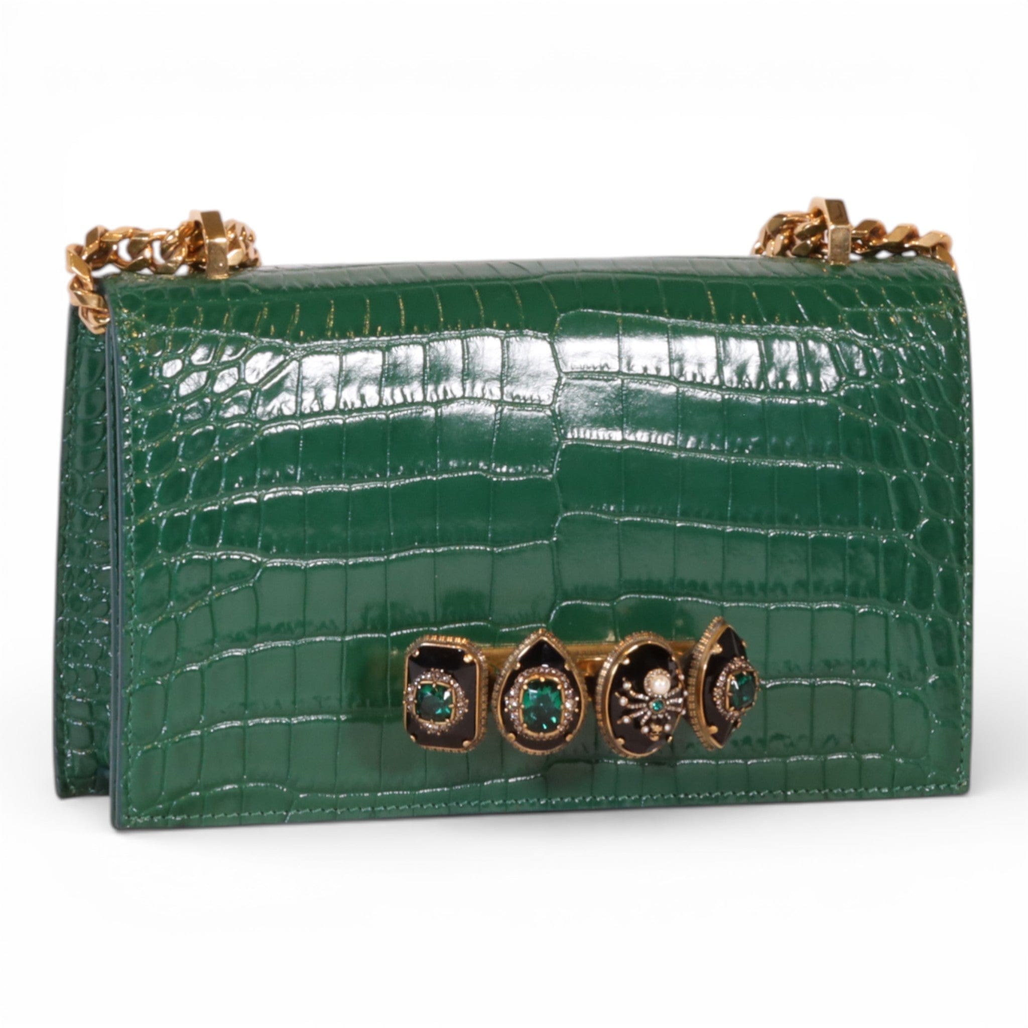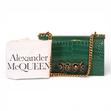 Alexander McQueen Mini Jewelled Satchel Emerald Green Croc Embossed Leather