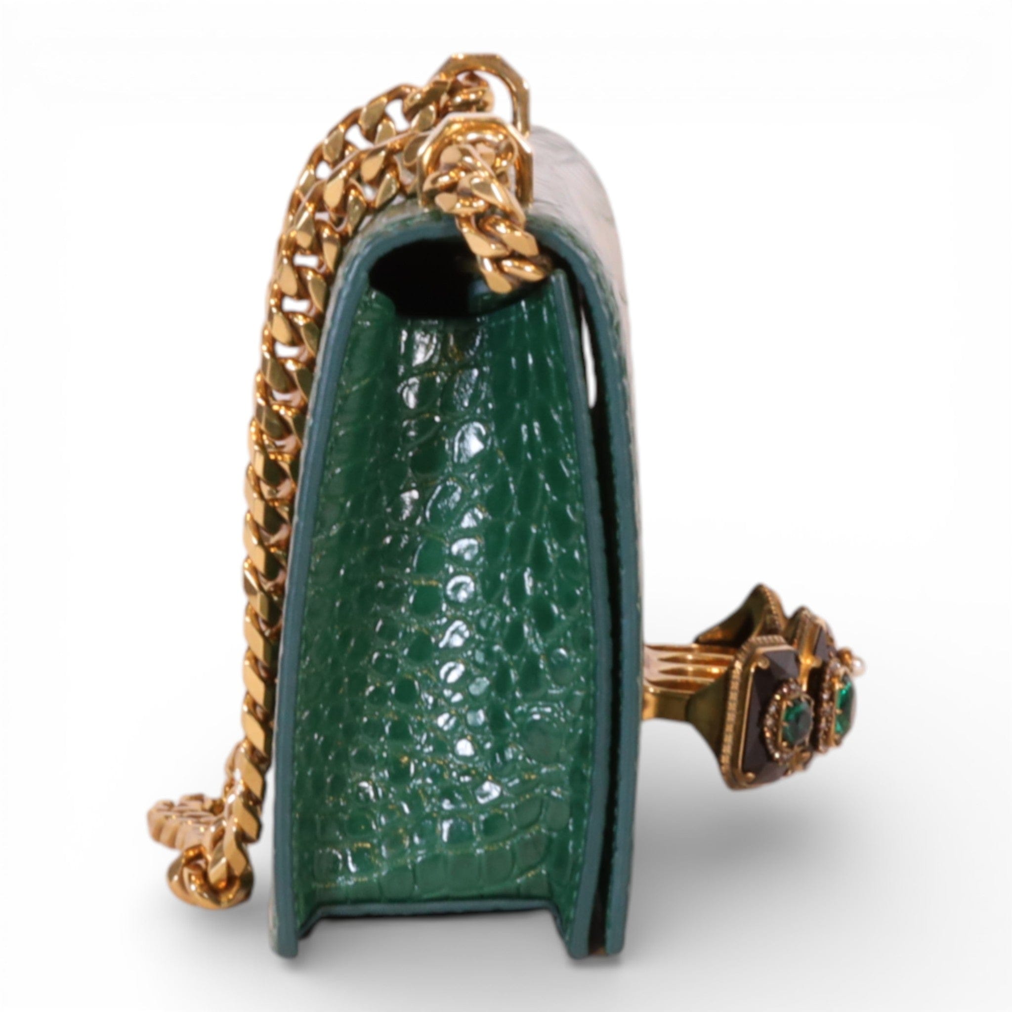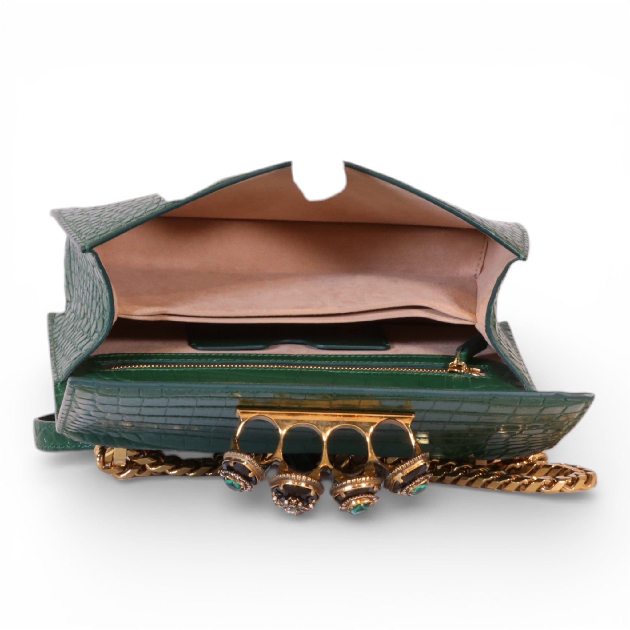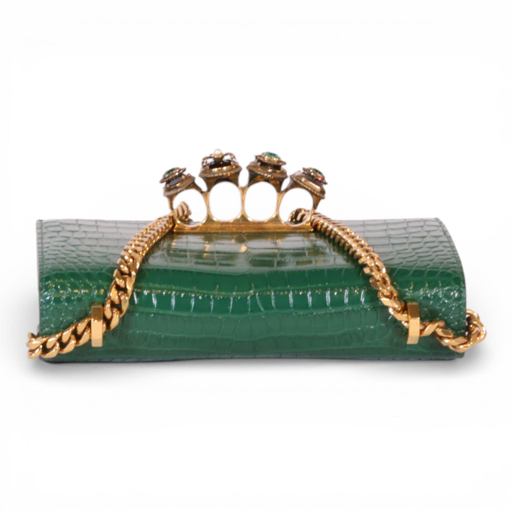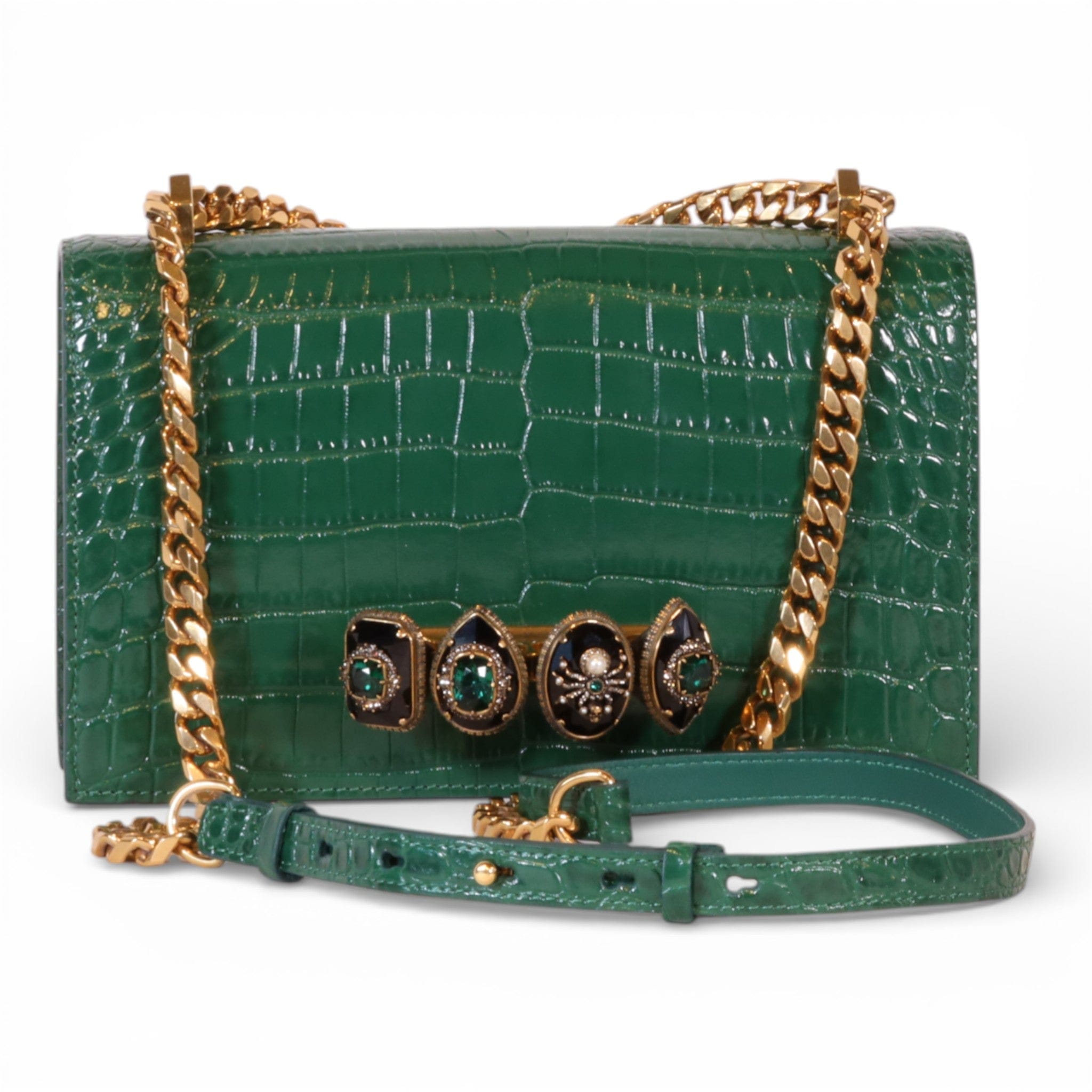 Alexander McQueen Mini Jewelled Satchel Emerald Green Croc Embossed Leather