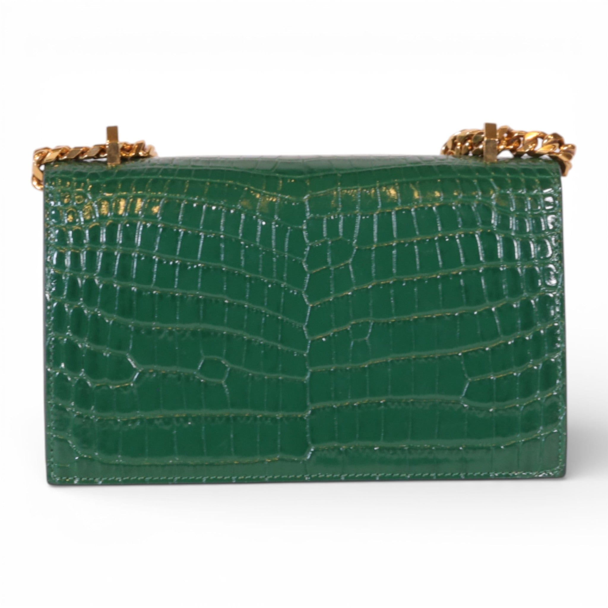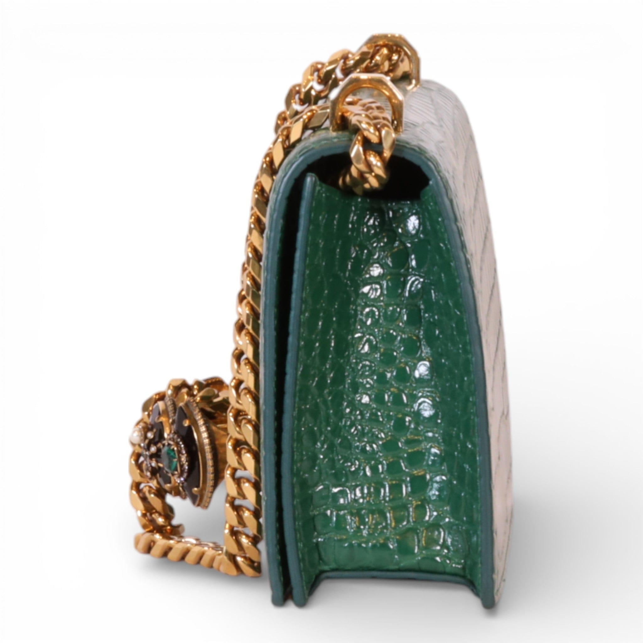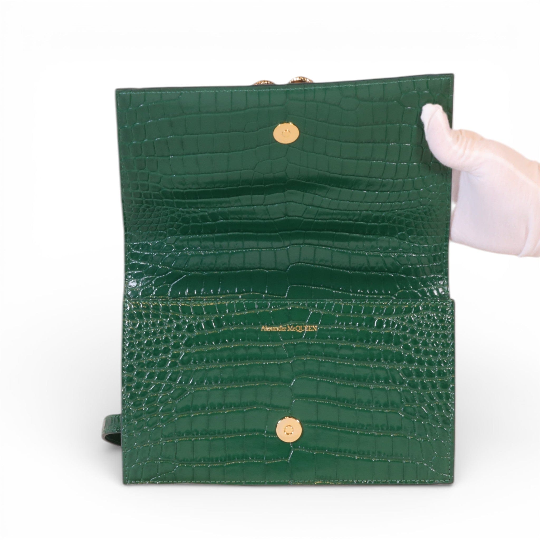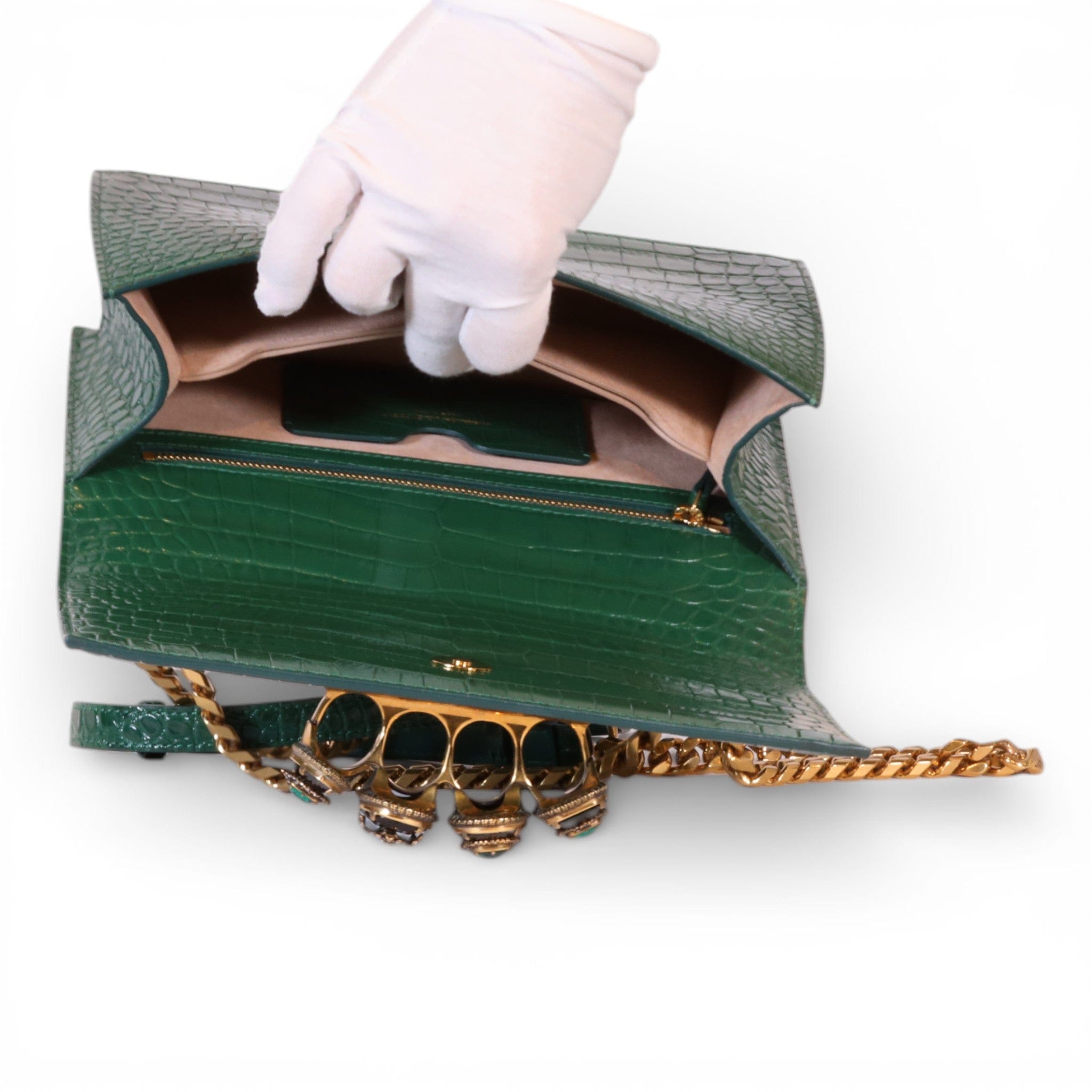 Alexander McQueen Mini Jewelled Satchel Emerald Green Croc Embossed Leather
