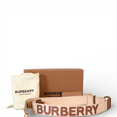 Authentic pre-owned Burberry bag strap crafted from cotton canvas and leather, featuring the iconic Horseferry print. This versatile accessory shows minor interior discoloration consistent with gentle use. Includes original box and dust bag, preserving the provenance of this luxury piece. Perfect for refreshing a beloved Burberry bag or as a standalone statement accent.