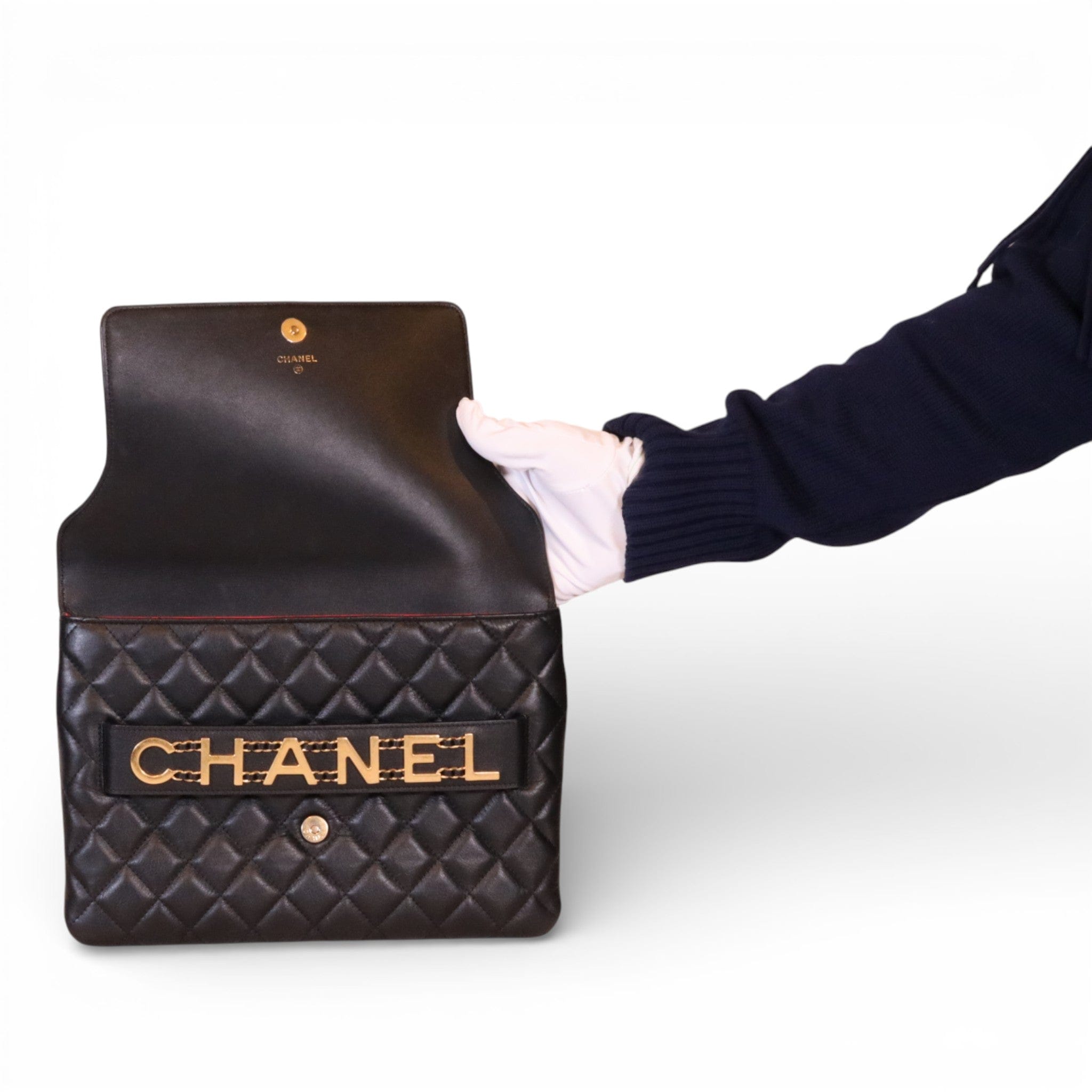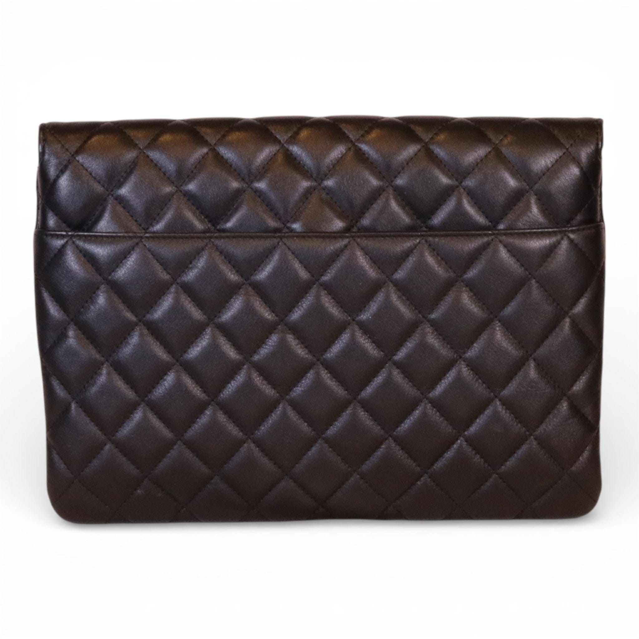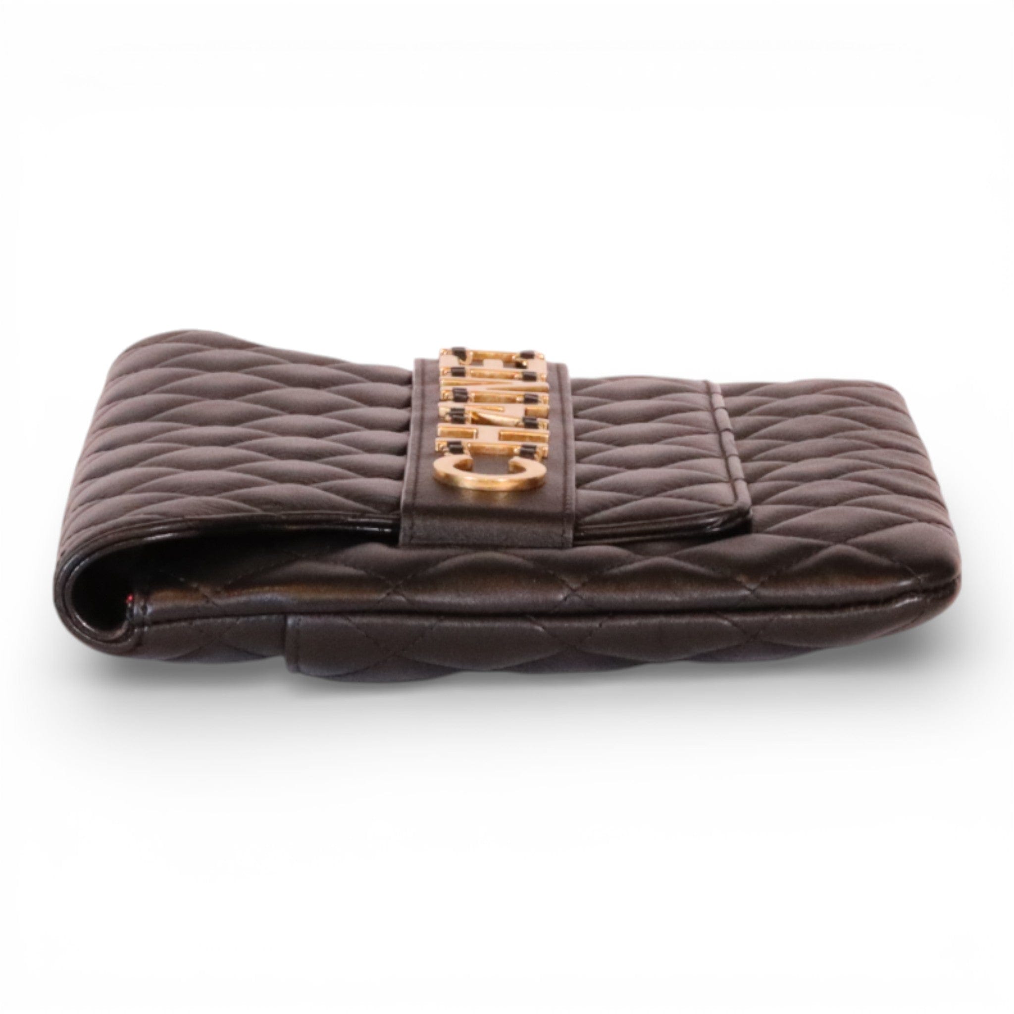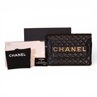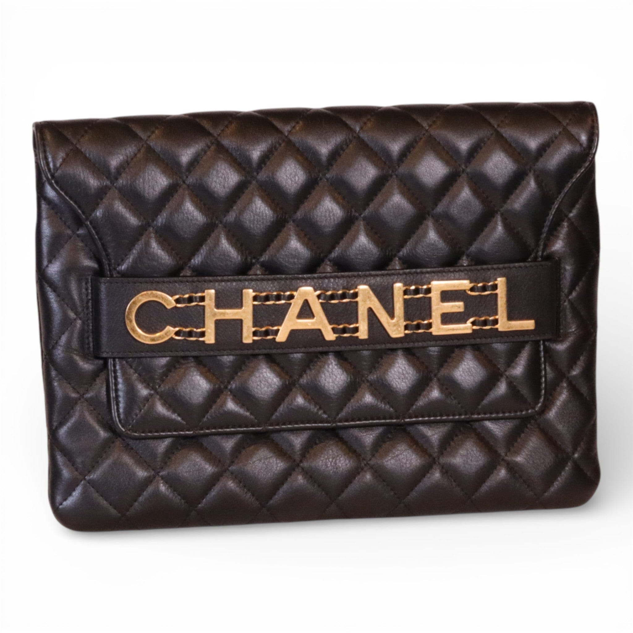 Chanel 2019 Calfskin Quilted Front Logo Enchained Clutch