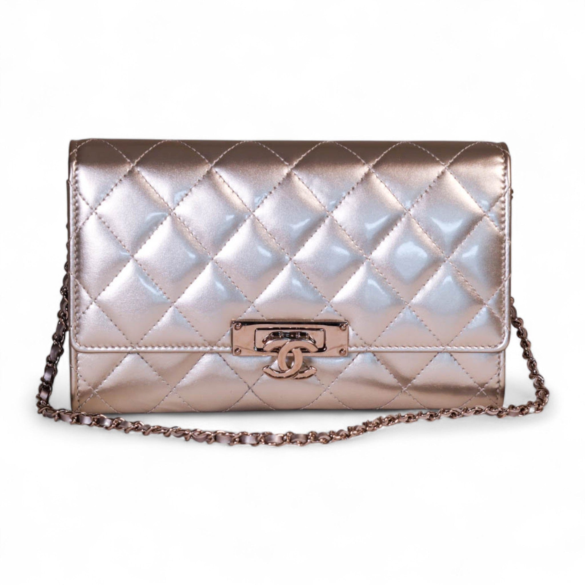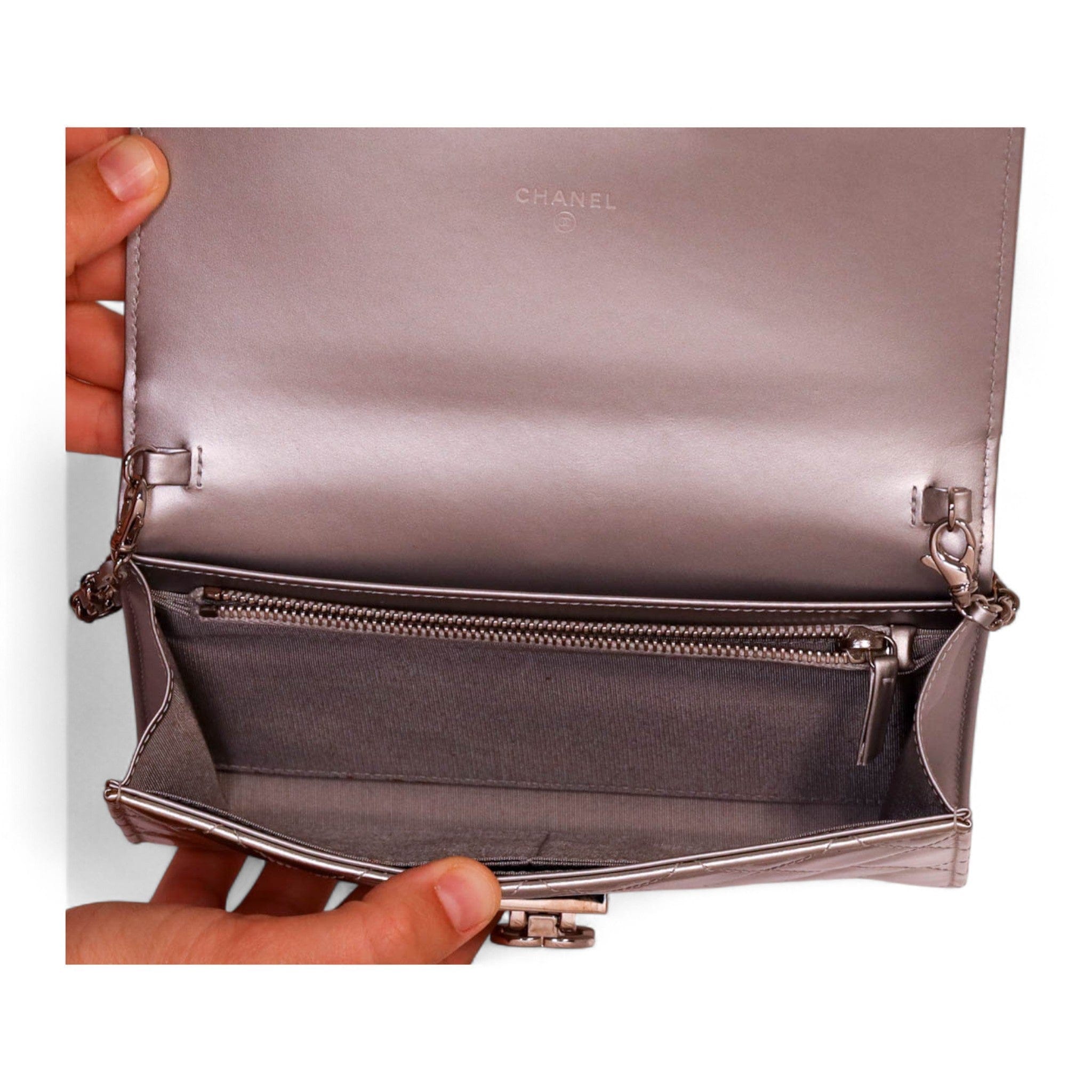 Chanel Silver Diamond Lattice Leather Chain Shoulder Bag Silver Color Shoulder Bag Patent Leather