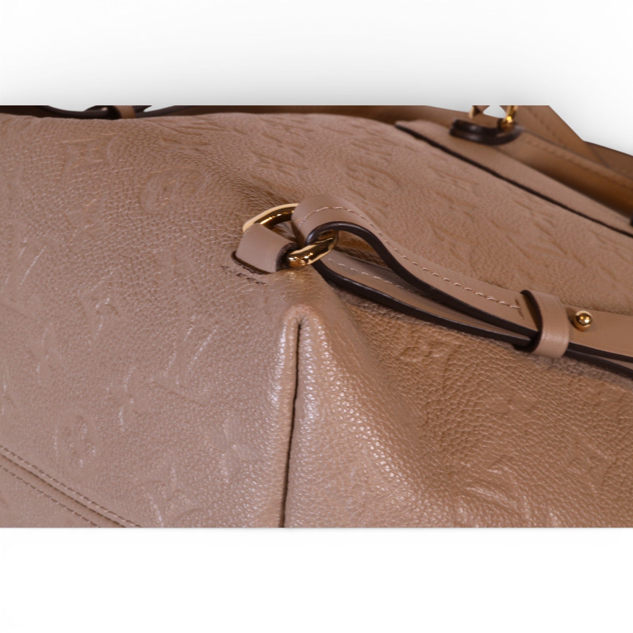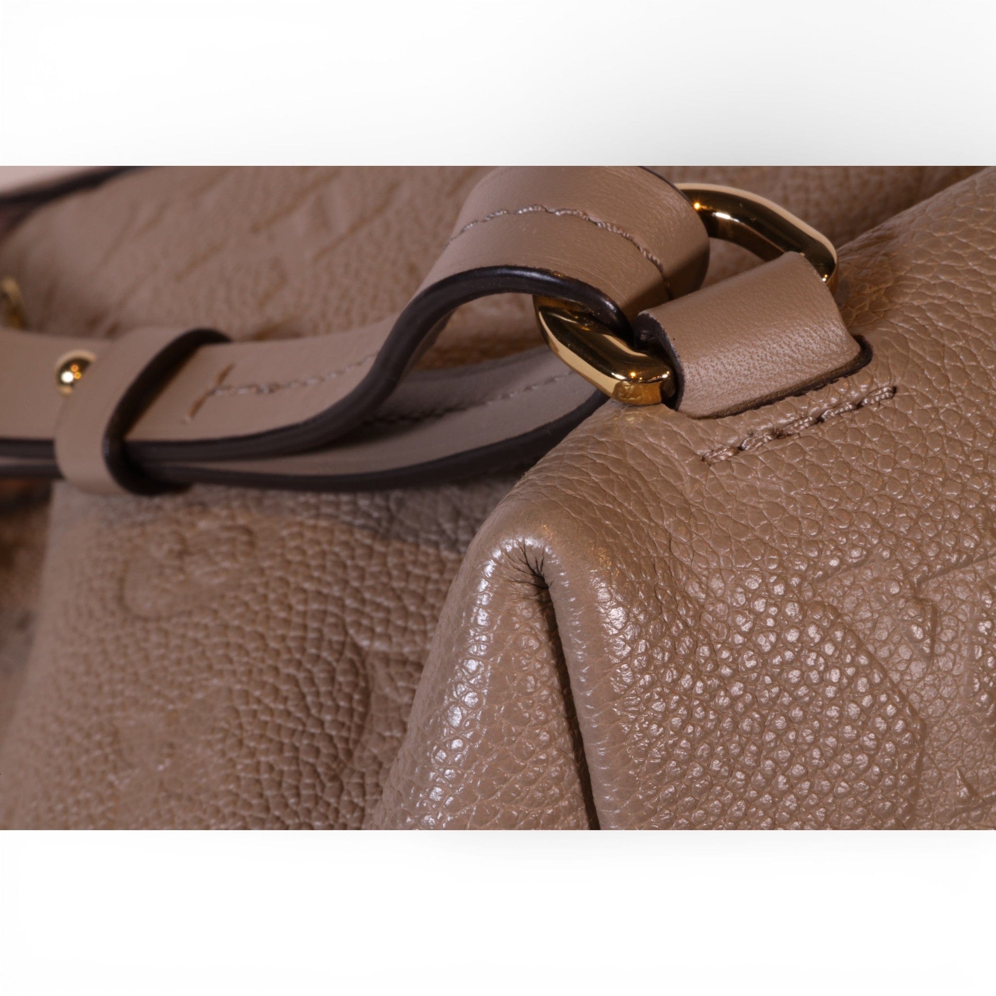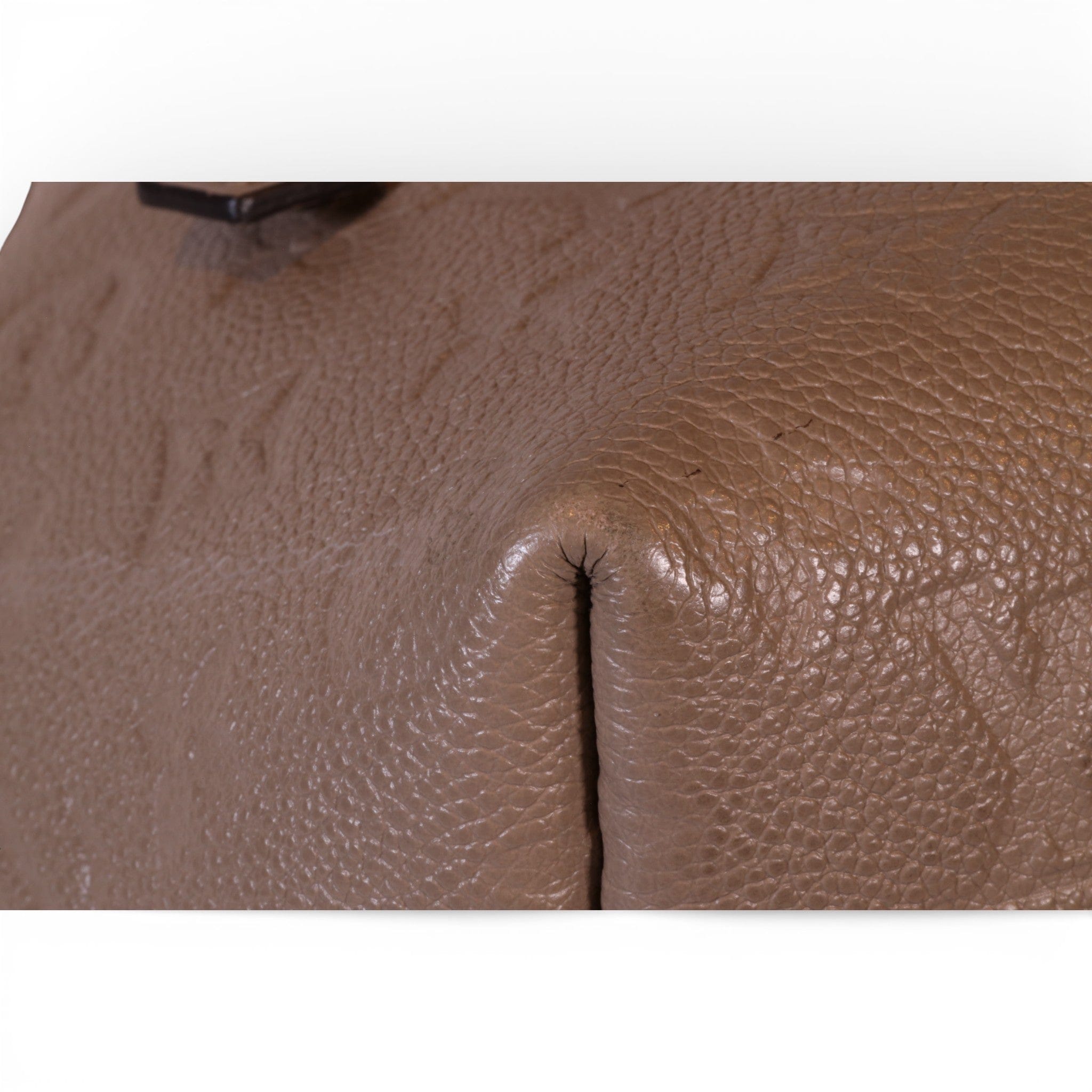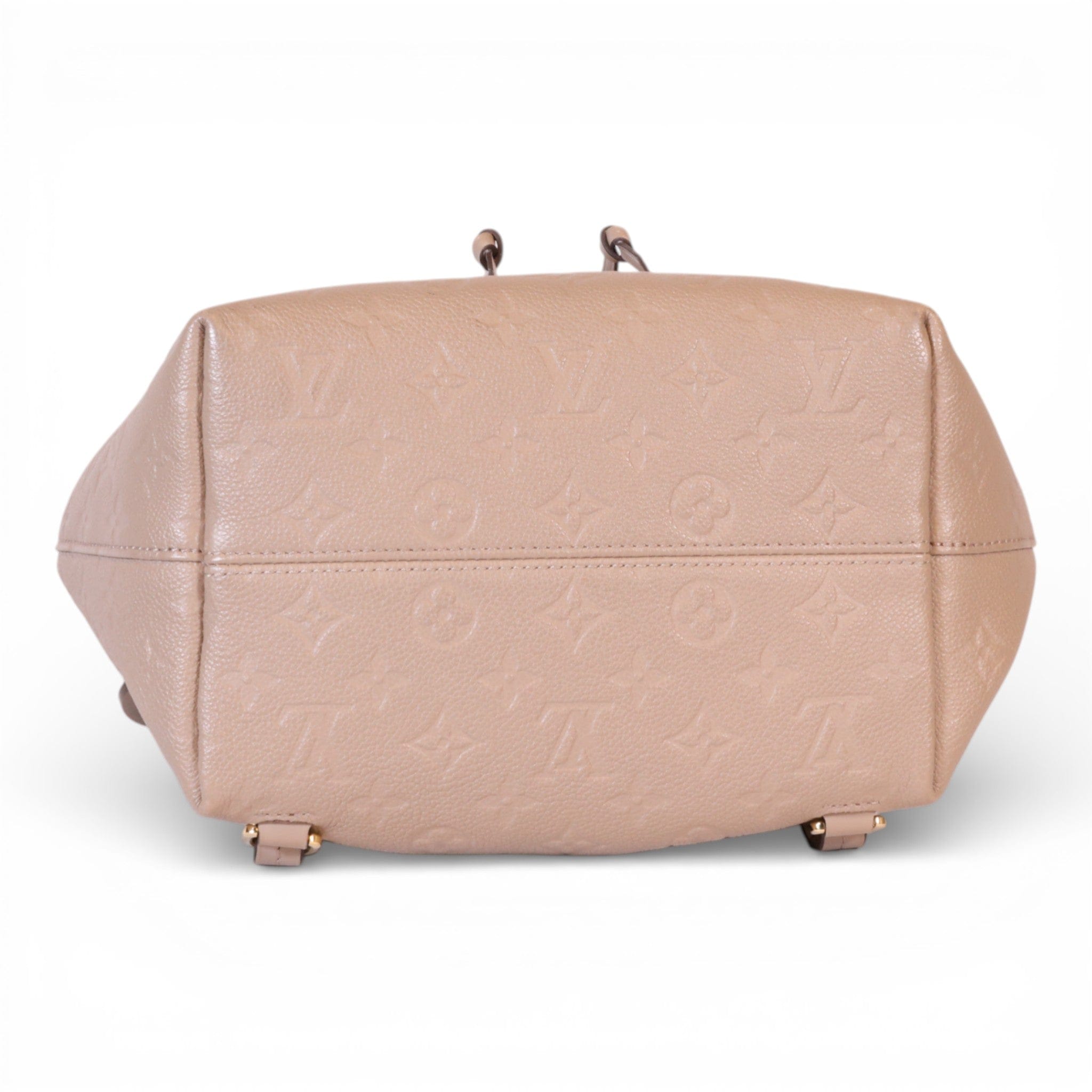 Pre-owned Louis Vuitton Montsouris Backpack crafted in supple Turtledove Empreinte leather, presenting in excellent condition with minimal corner wear consistent with careful use. This iconic silhouette retains its refined aesthetic and functionality, complemented by the original dustbag and presentation box. A distinguished addition to any luxury collection, offering authentic provenance and timeless design at a considered price point.