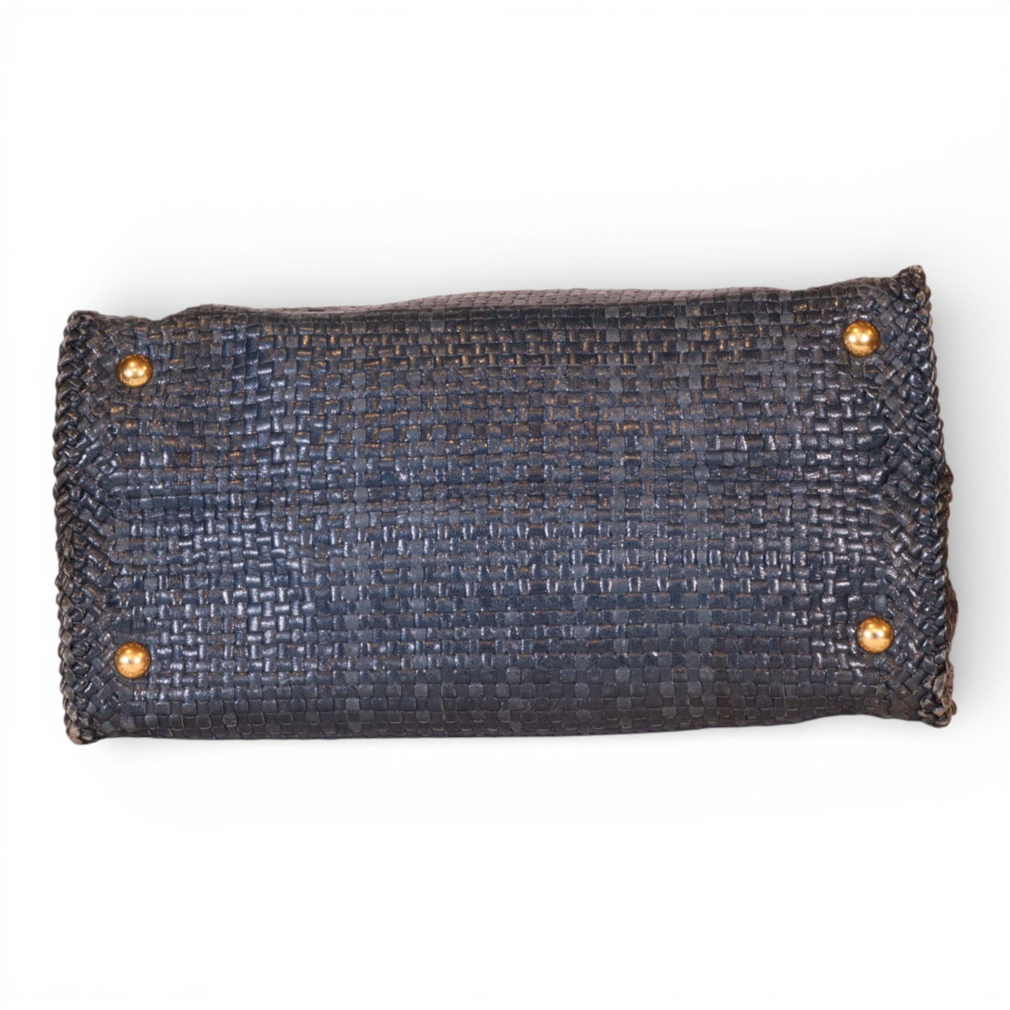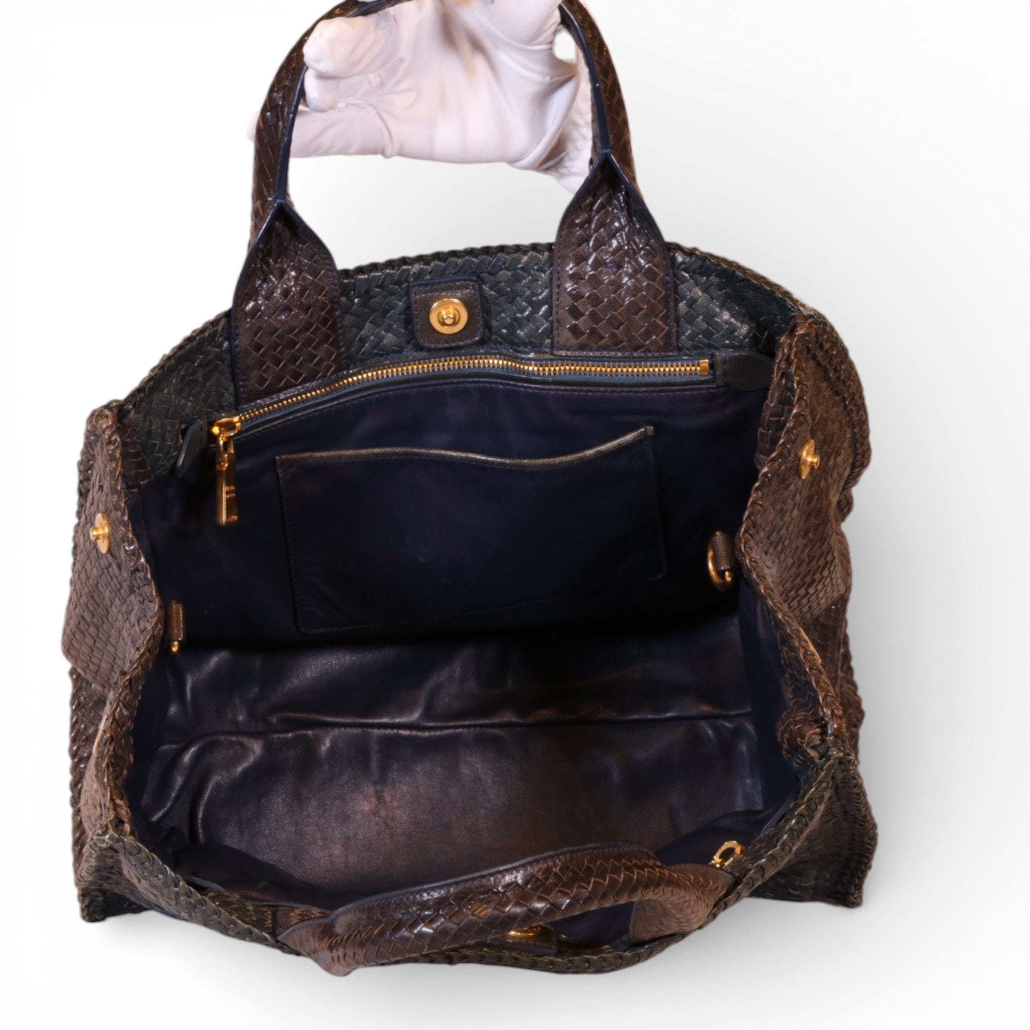 Prada Medium Madras Blue and Brown Goatskin Woven Tote
