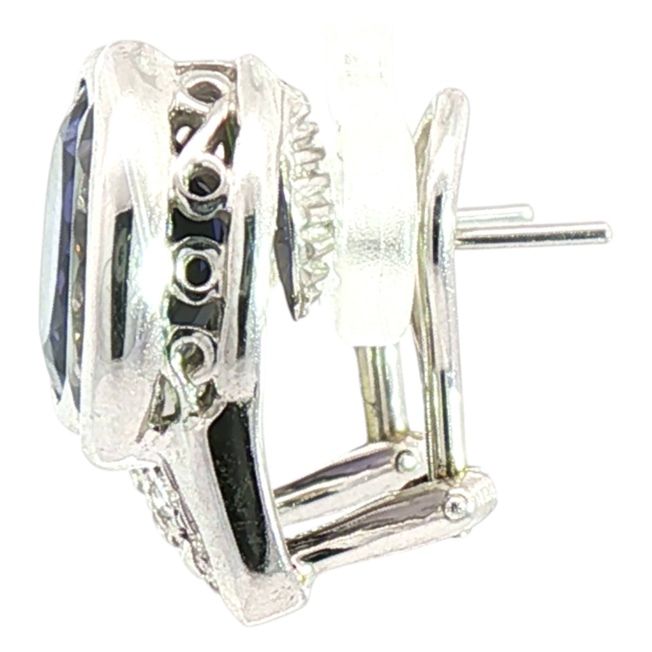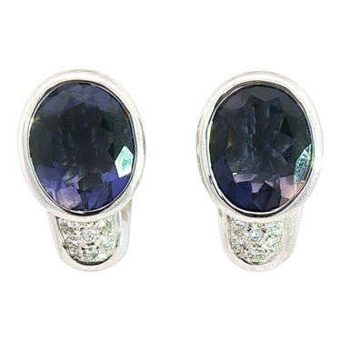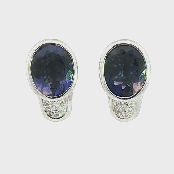 Iolite and Diamond Leverback Earrings | 18K White Gold