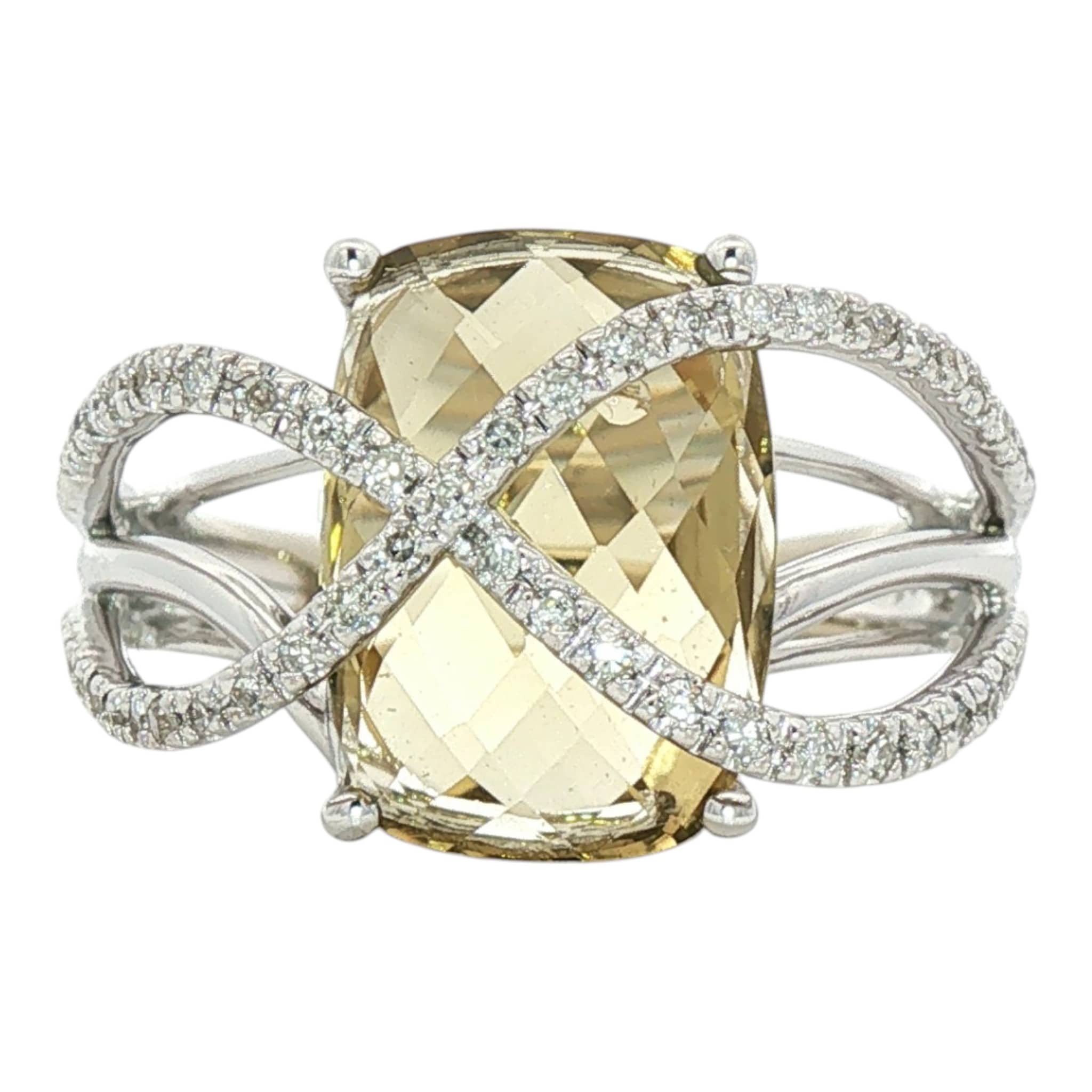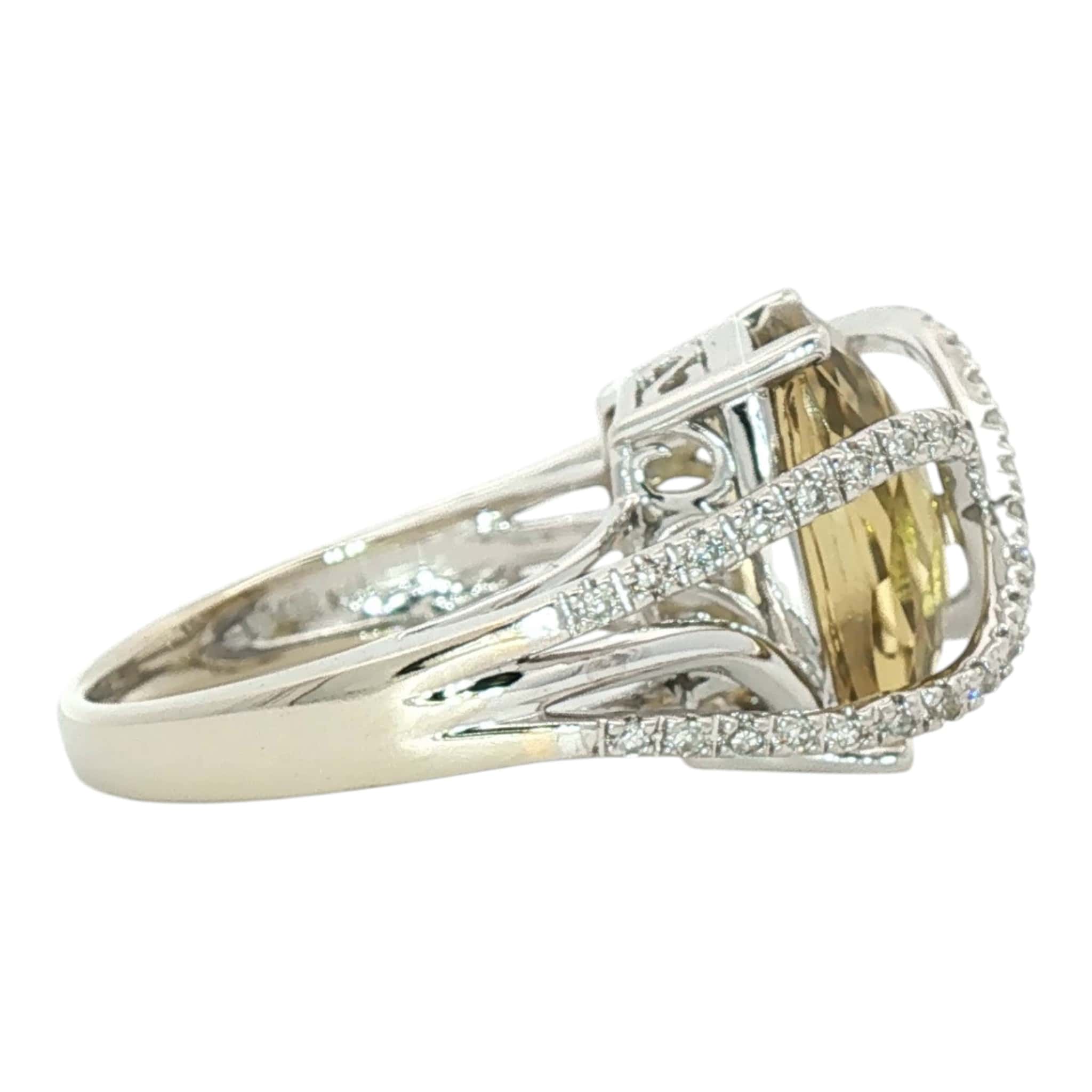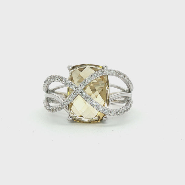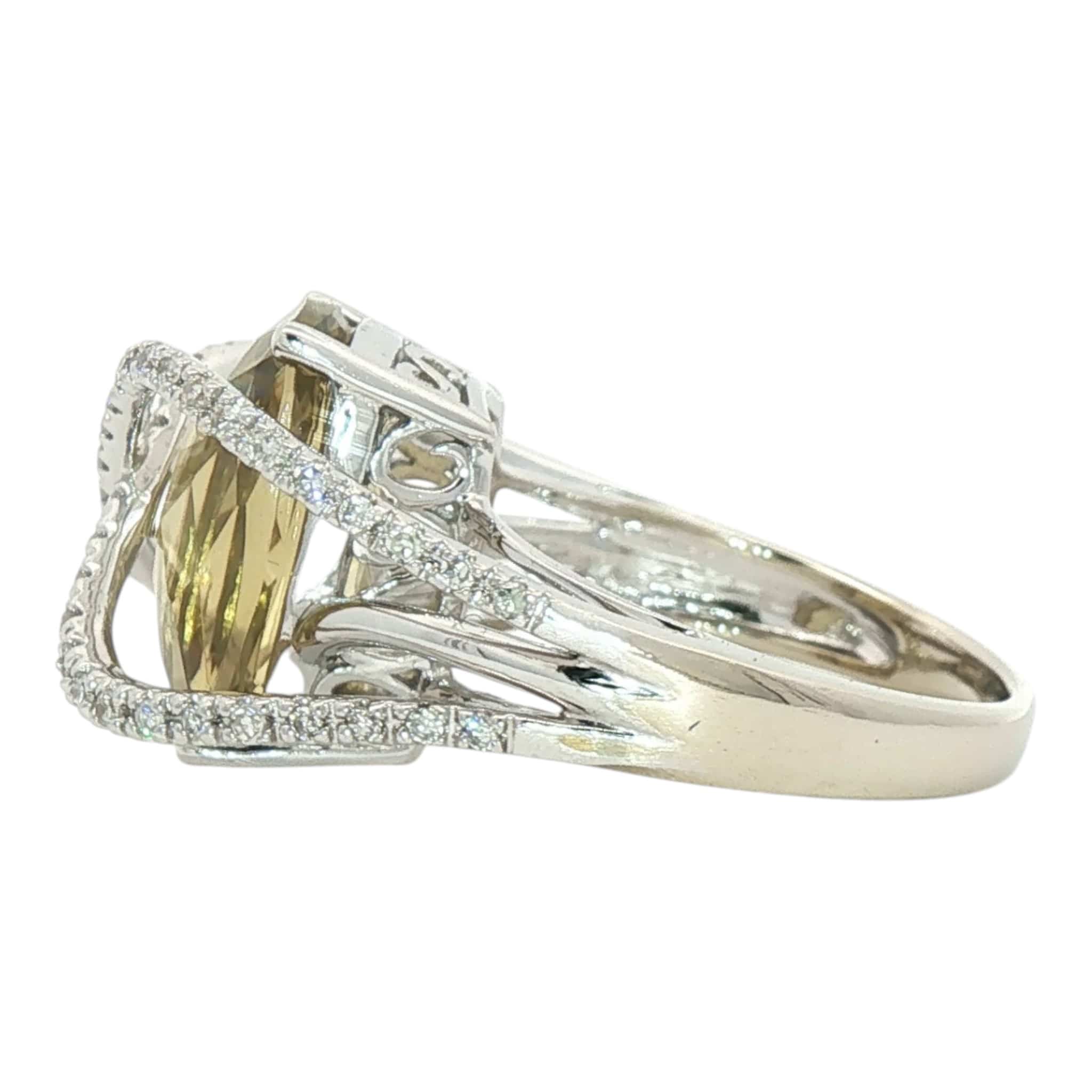 Lemon Citrine Diamond Bypass Ring | 14K White Gold