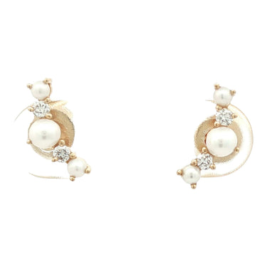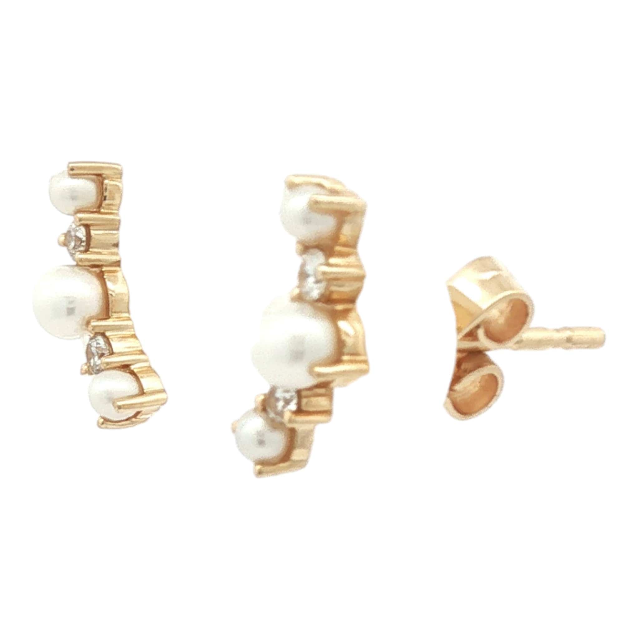 These exquisite pearl climber earrings showcase the finest craftsmanship in 14K yellow gold (1.3g), combining iridescent pearls with brilliant diamonds for understated elegance.