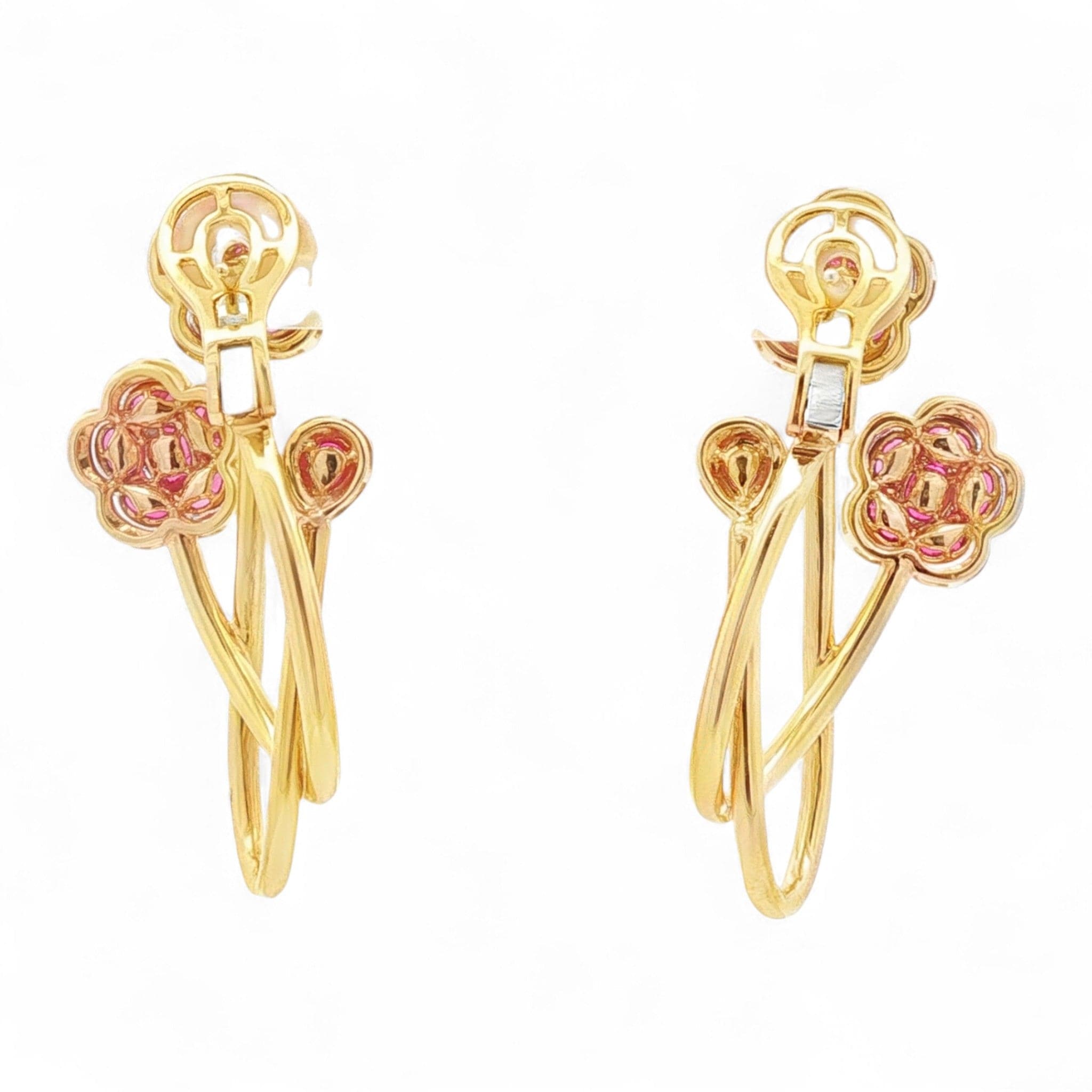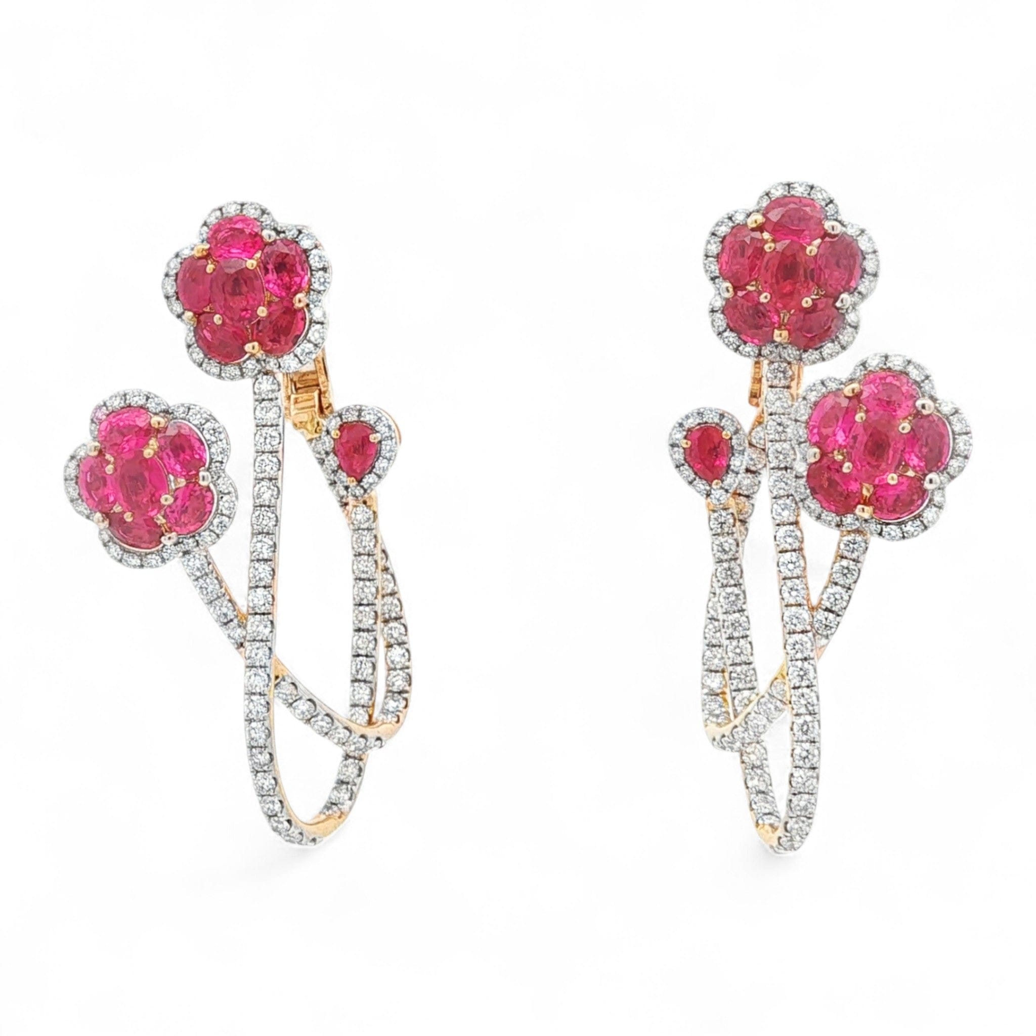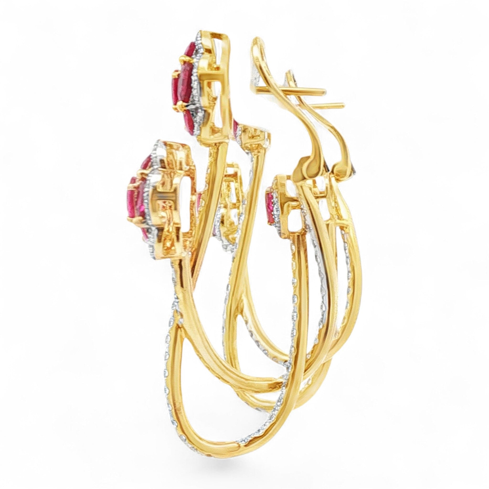 Floral Bloom 14K Gold Earrings with Ruby & White Diamond Accents