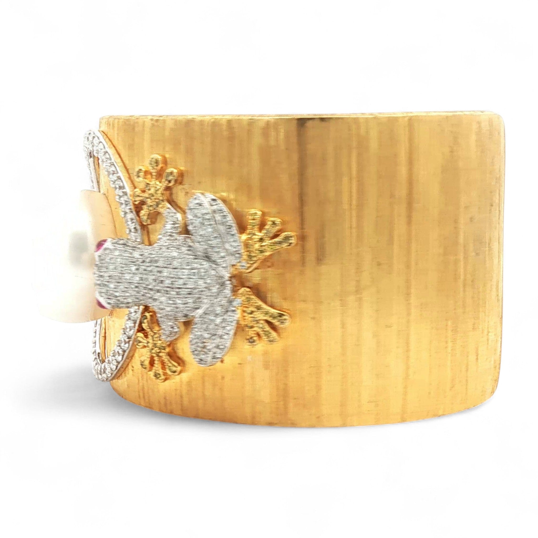 Amphibian Serenade Bangle in 18K Yellow Gold | Pearl, Ruby, & Diamonds