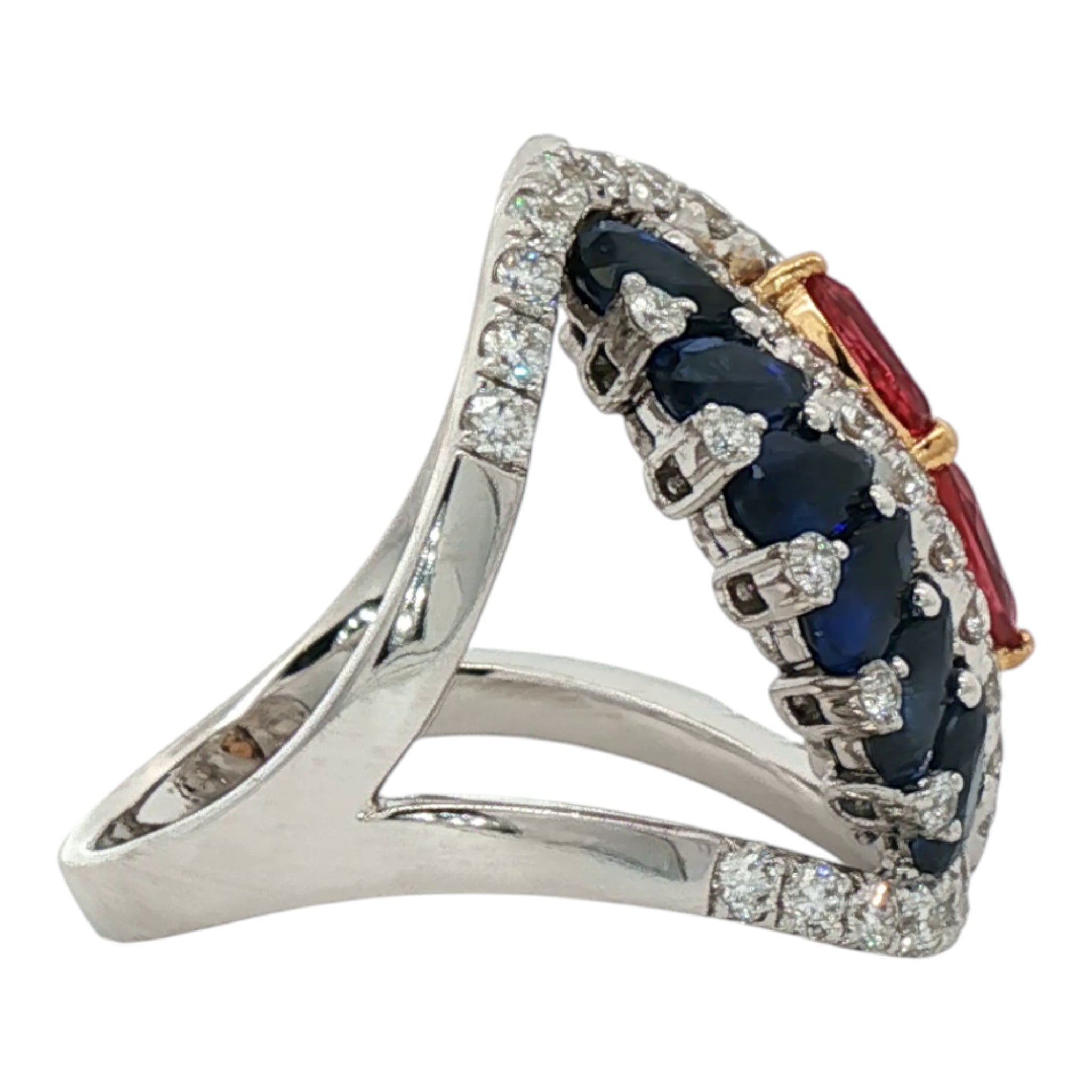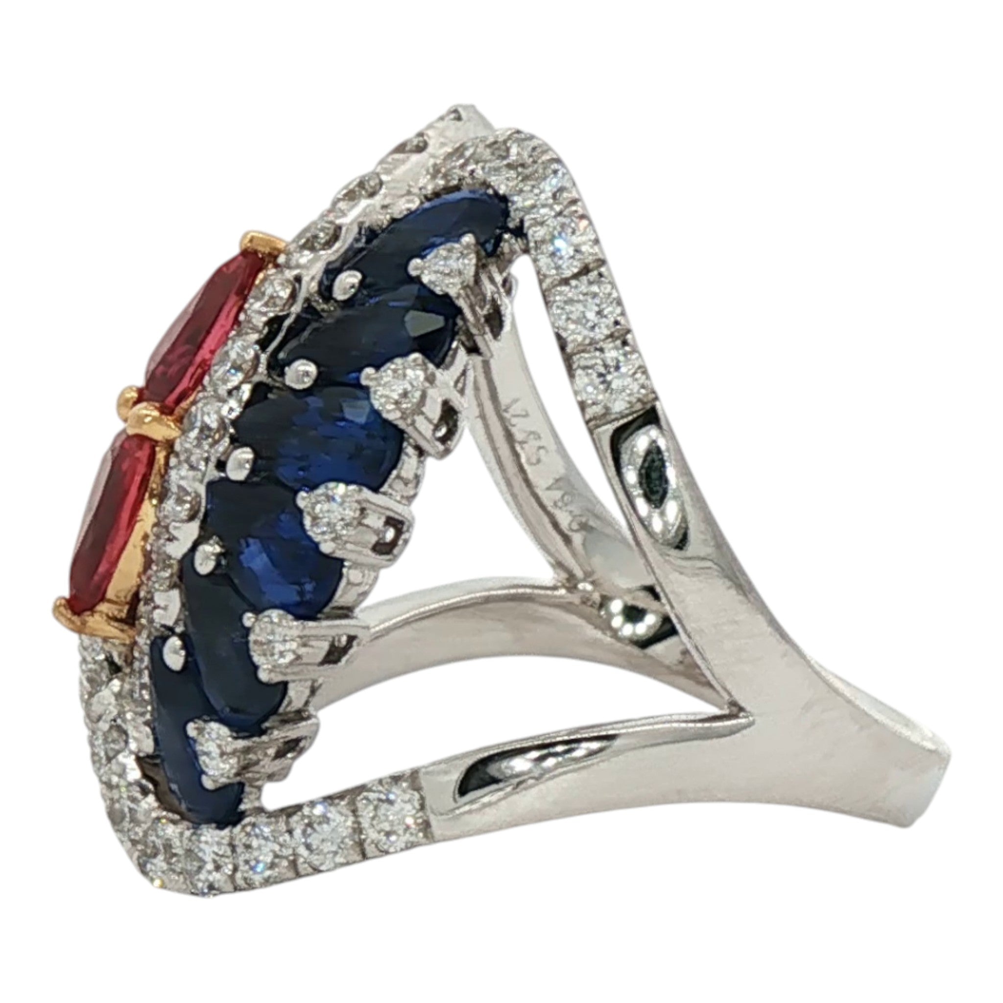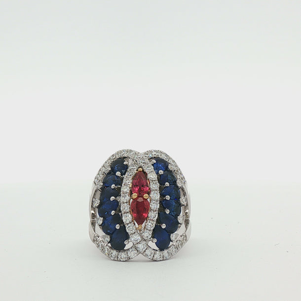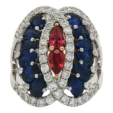 Imperial Radiance Ring in 18K White Gold | Blue Sapphires, Rubies & White Diamonds