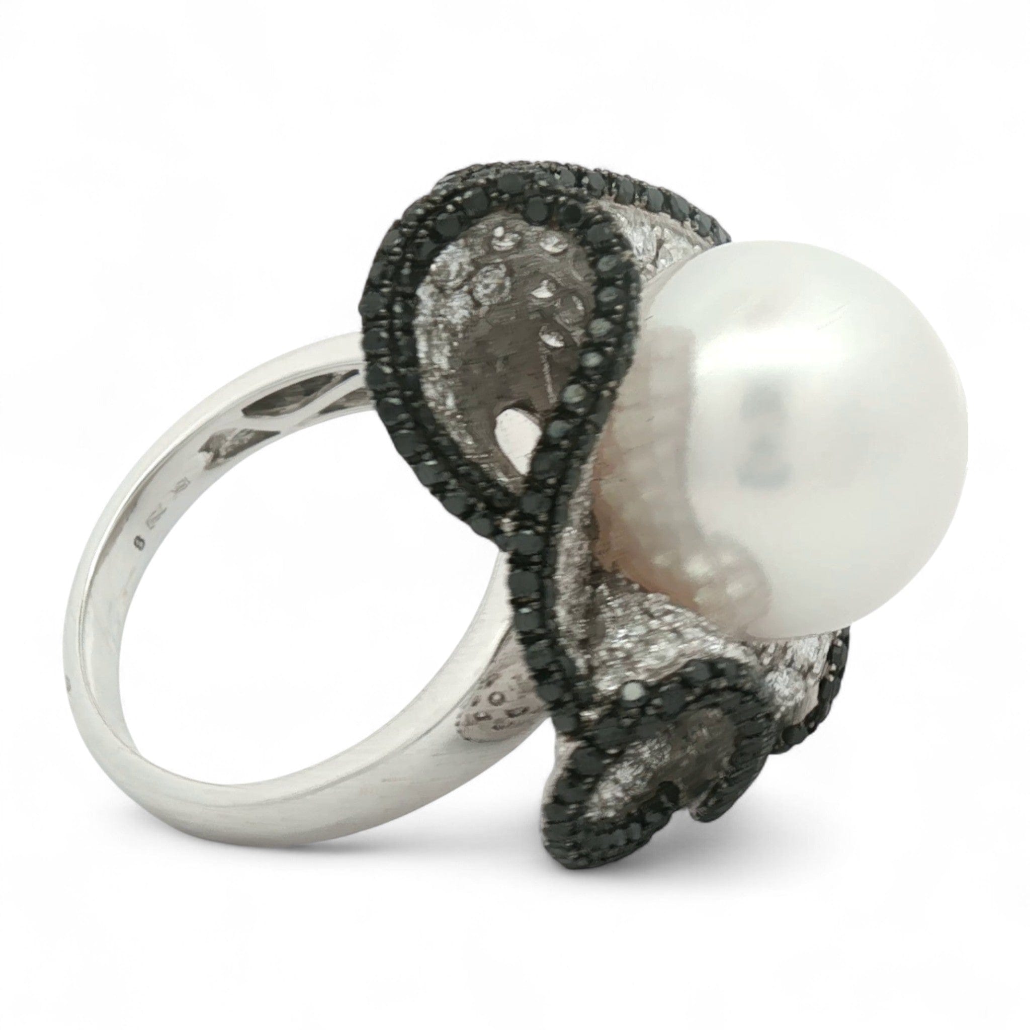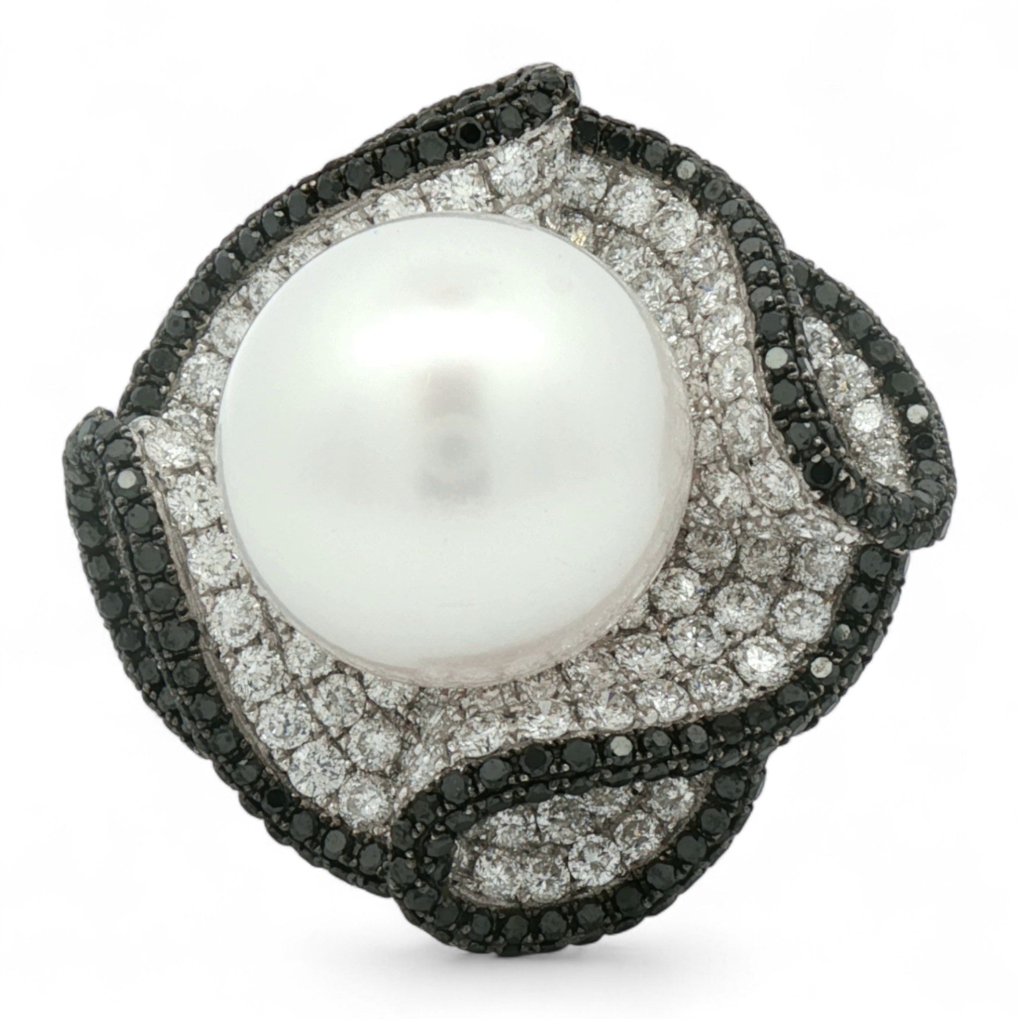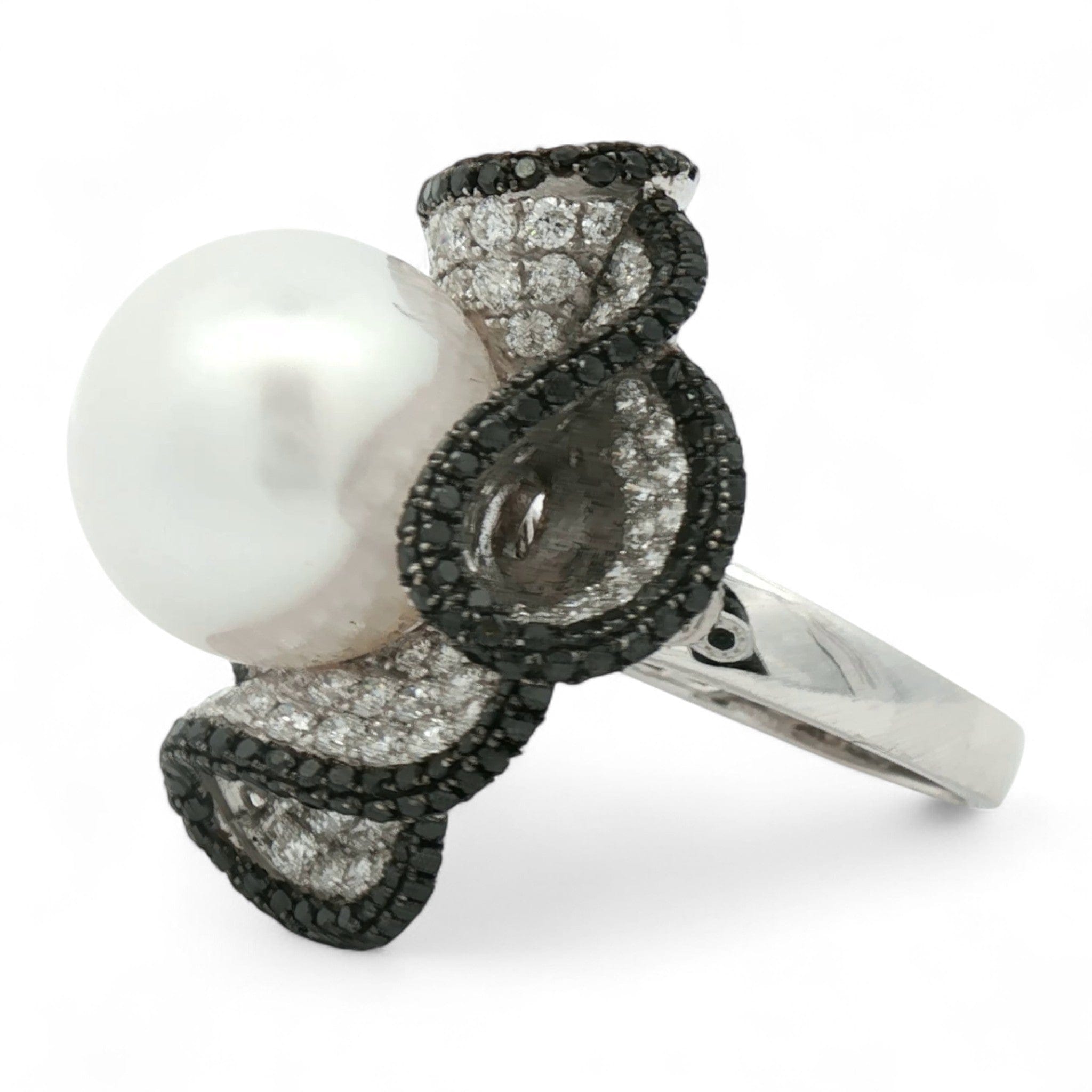 Midnight Pearl Ring in 18K White Gold | South Sea Pearl, Black & White Diamonds