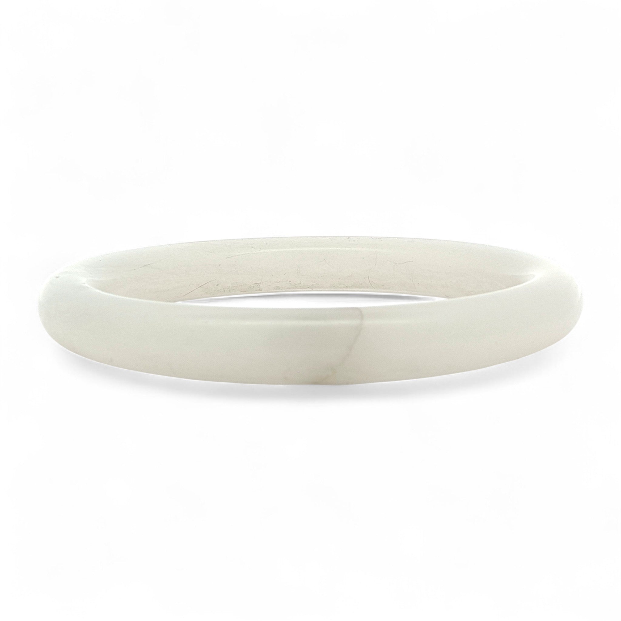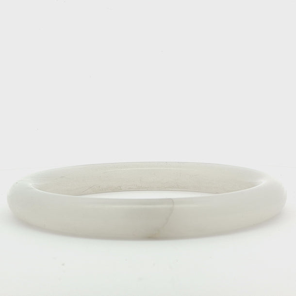 Embrace tranquility and elegance with the Serene Harmony White Jade Bangle. This timeless accessory is crafted from pure, high-quality white jade, radiating a gentle and calming energy. Its smooth, polished surface and minimalist design make it a versatile piece, perfect for both casual and formal occasions. Revered for its beauty and symbolic meaning, this jade bangle embodies purity, balance, and inner peace. Whether worn alone or stacked with other bracelets, it adds a touch of understated sophistication to any ensemble, making it an essential addition to your jewelry collection.