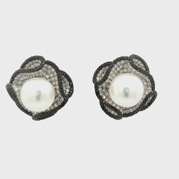 These South Sea pearl and diamond earrings represent a masterclass in fine jewelry design. Featuring premium white South Sea pearls renowned for their lustrous nacre and exceptional luster, paired with carefully selected black and white diamonds that enhance their natural brilliance. The 18K white gold setting provides optimal durability and a neutral backdrop that allows both the pearls and diamonds to command attention. The contrasting diamond palette creates dimensional depth while maintaining refined sophistication. An investment piece for those who understand the distinction between luxury and true craftsmanship.