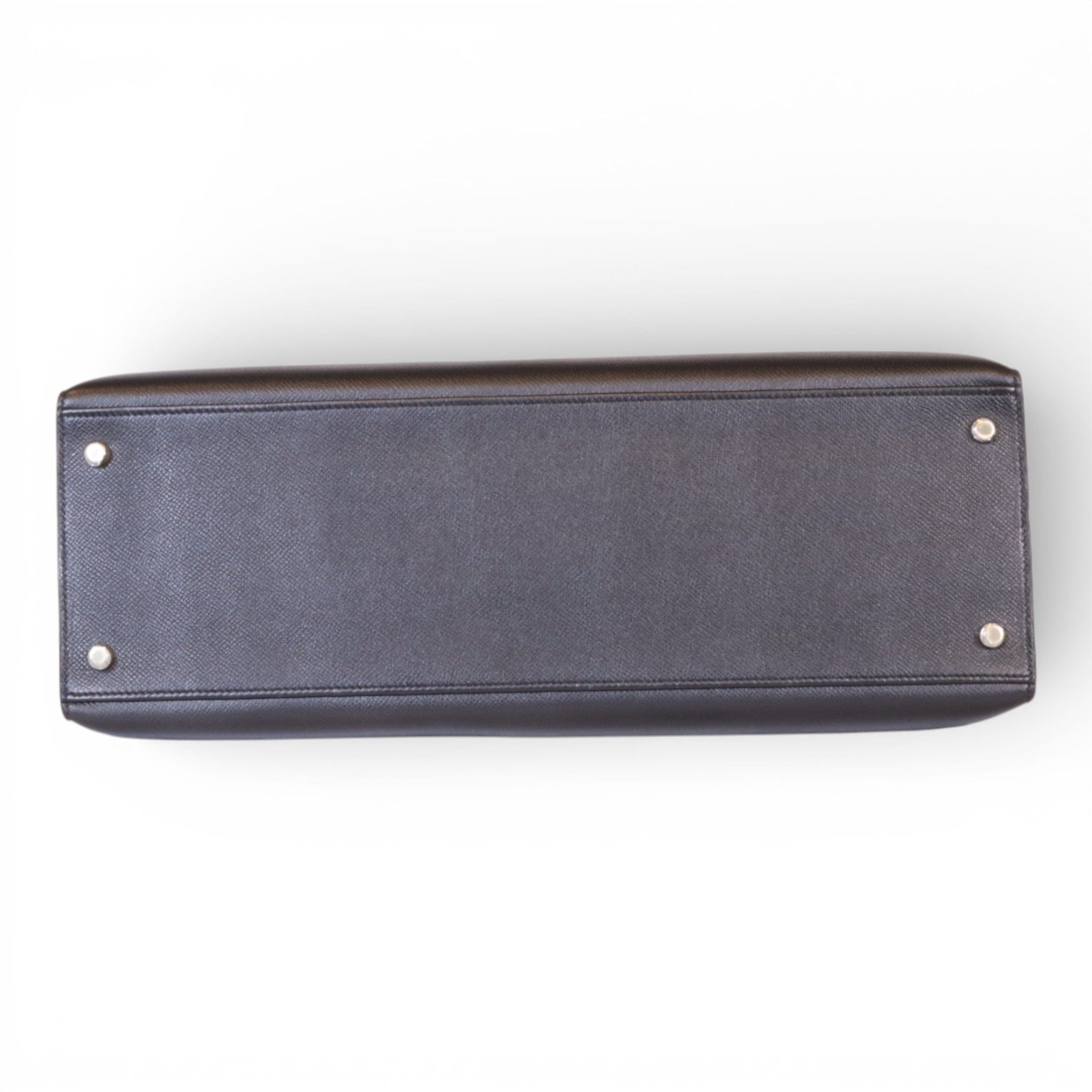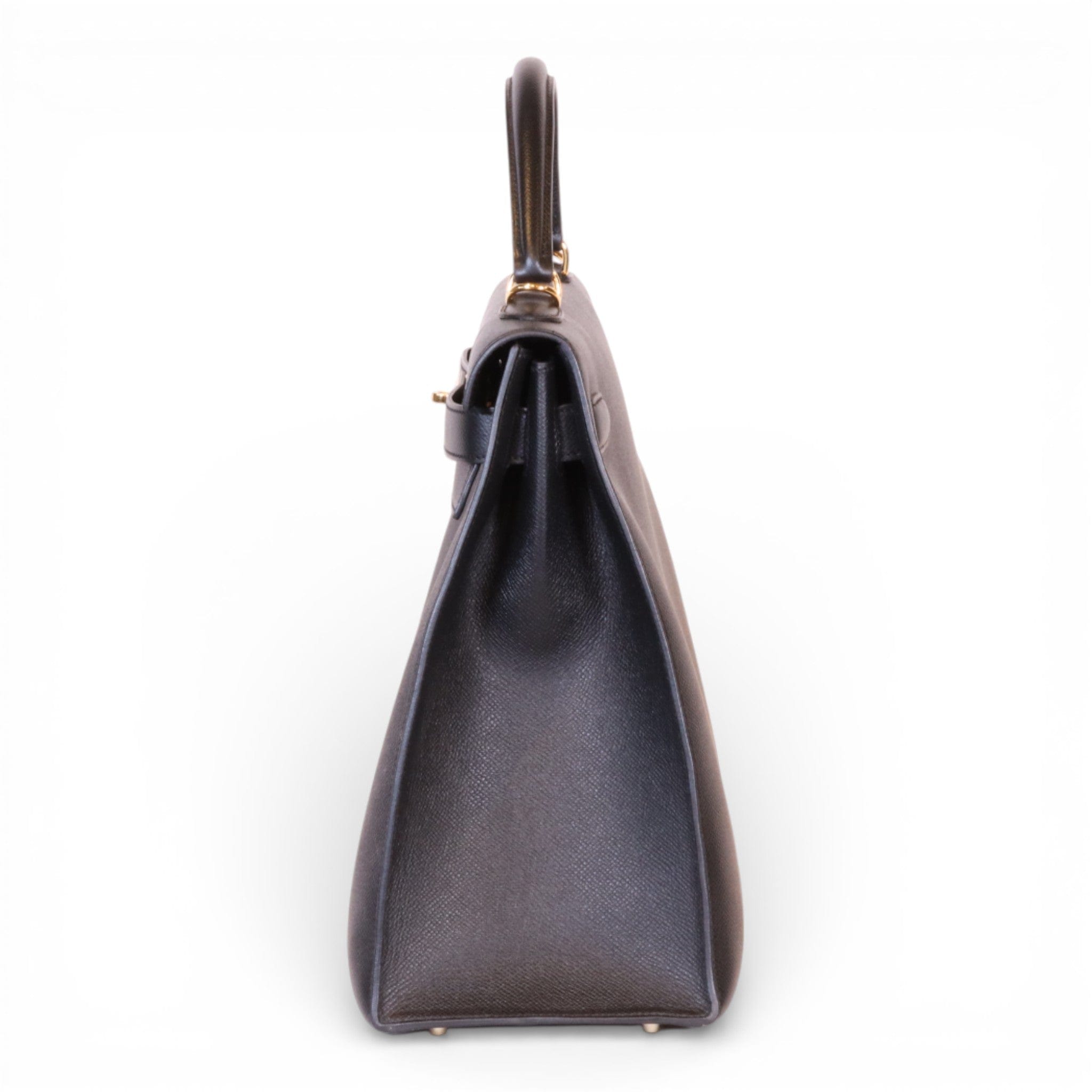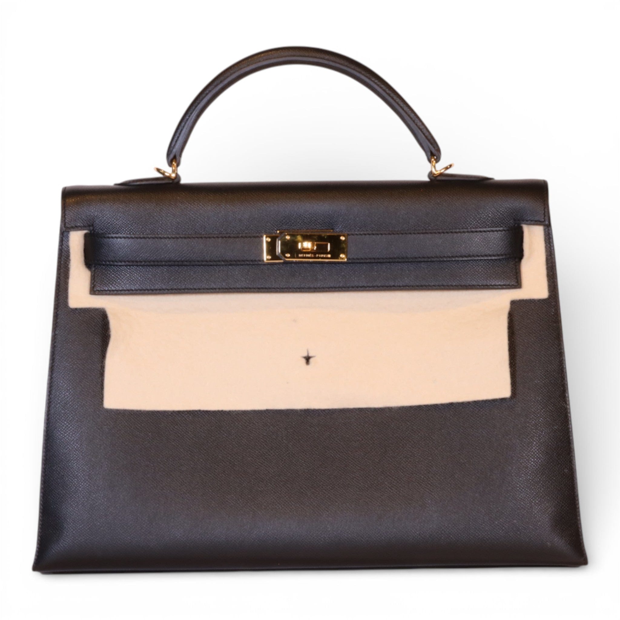 Discover timeless luxury with this exceptional pre-owned Hermès Kelly Sellier 40 in black Epsom leather. Crafted in 2012, this iconic handbag showcases the brand's legendary craftsmanship with its structured silhouette and gleaming gold hardware. The durable Epsom leather has developed a beautiful patina while maintaining pristine condition throughout. Complete with original Hermès packaging—including the signature box and protective dust bag—this investment piece represents the pinnacle of French heritage and enduring style. A coveted addition for discerning collectors.