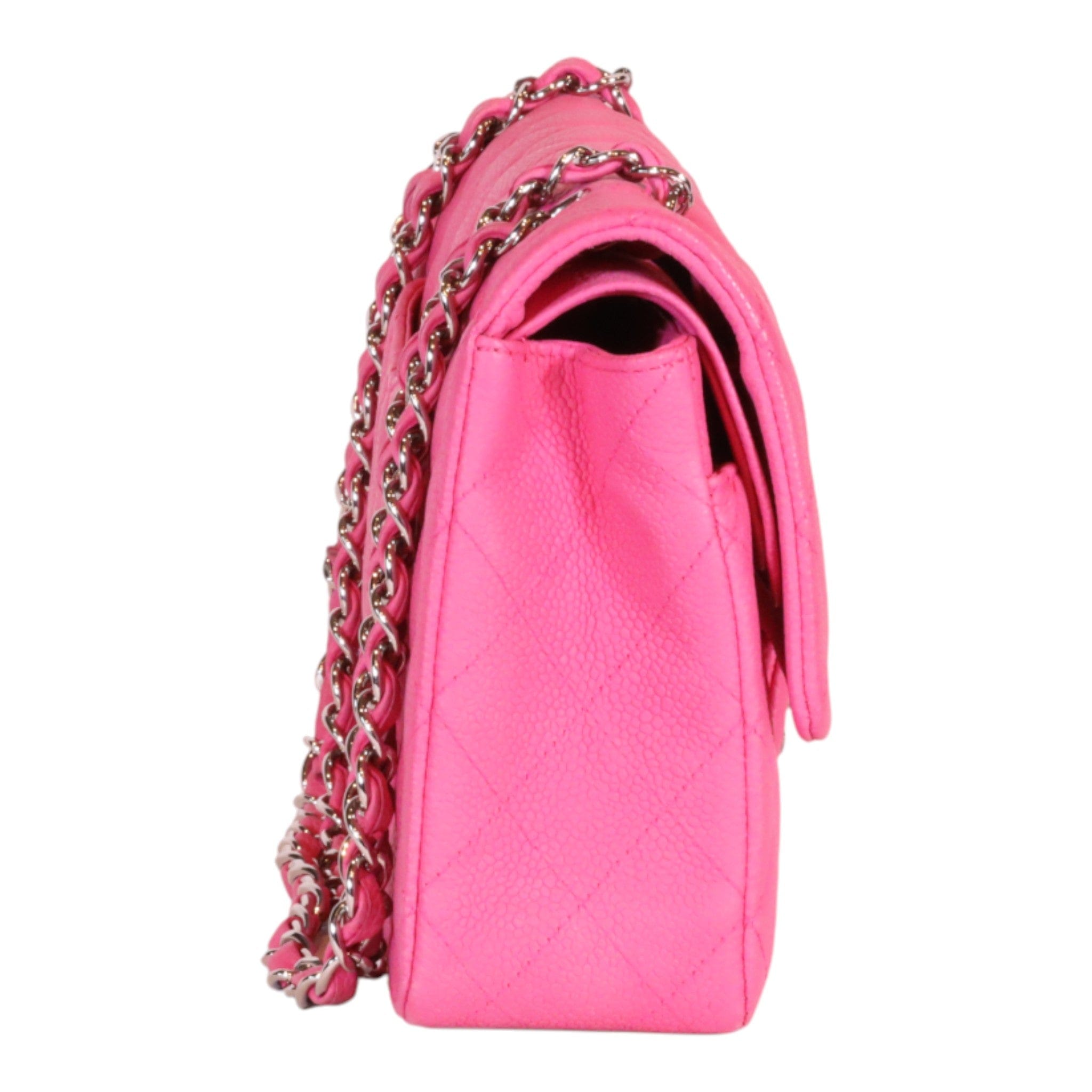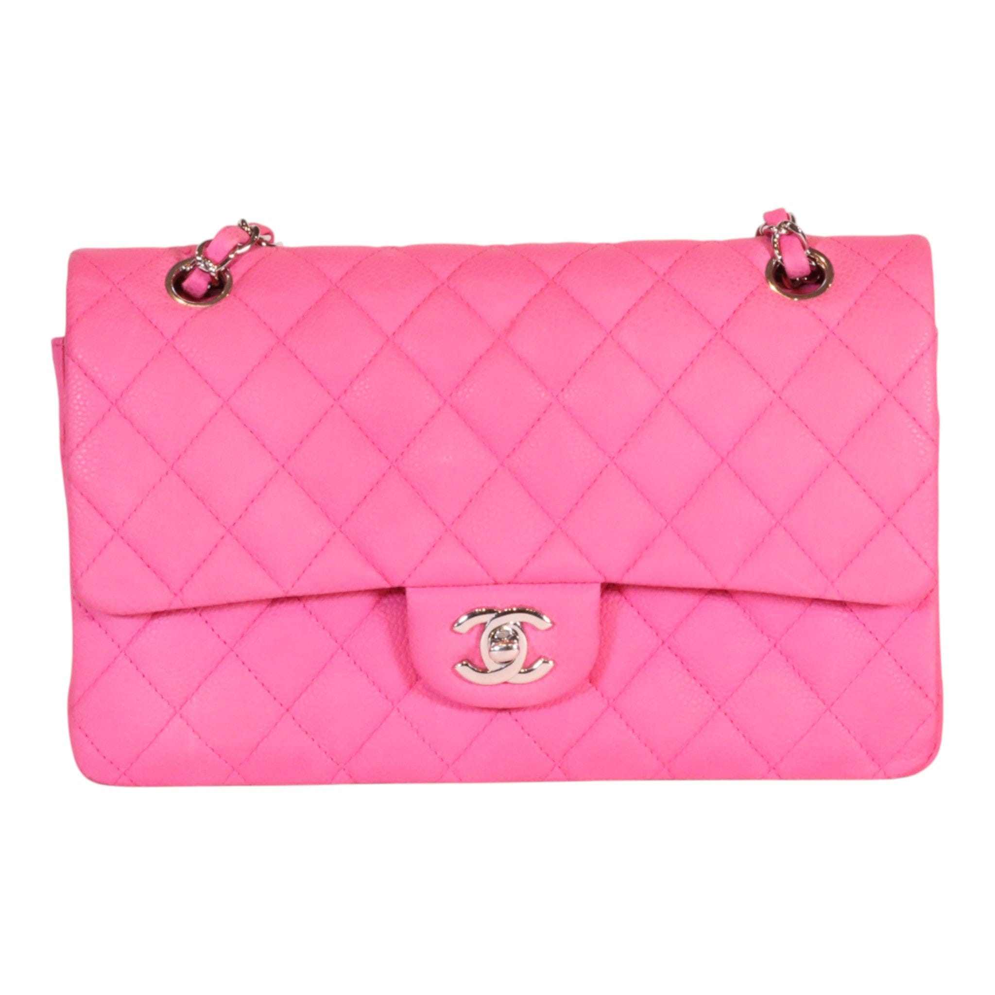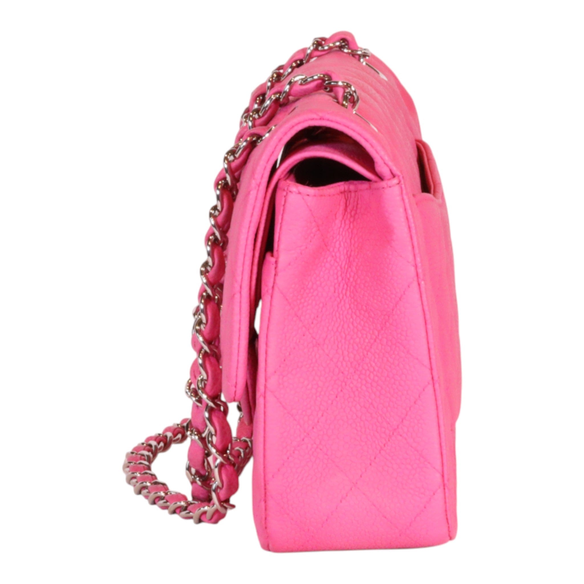 Chanel Classic Medium Double Flap Pink Quilted Suede Caviar Shoulder Bag