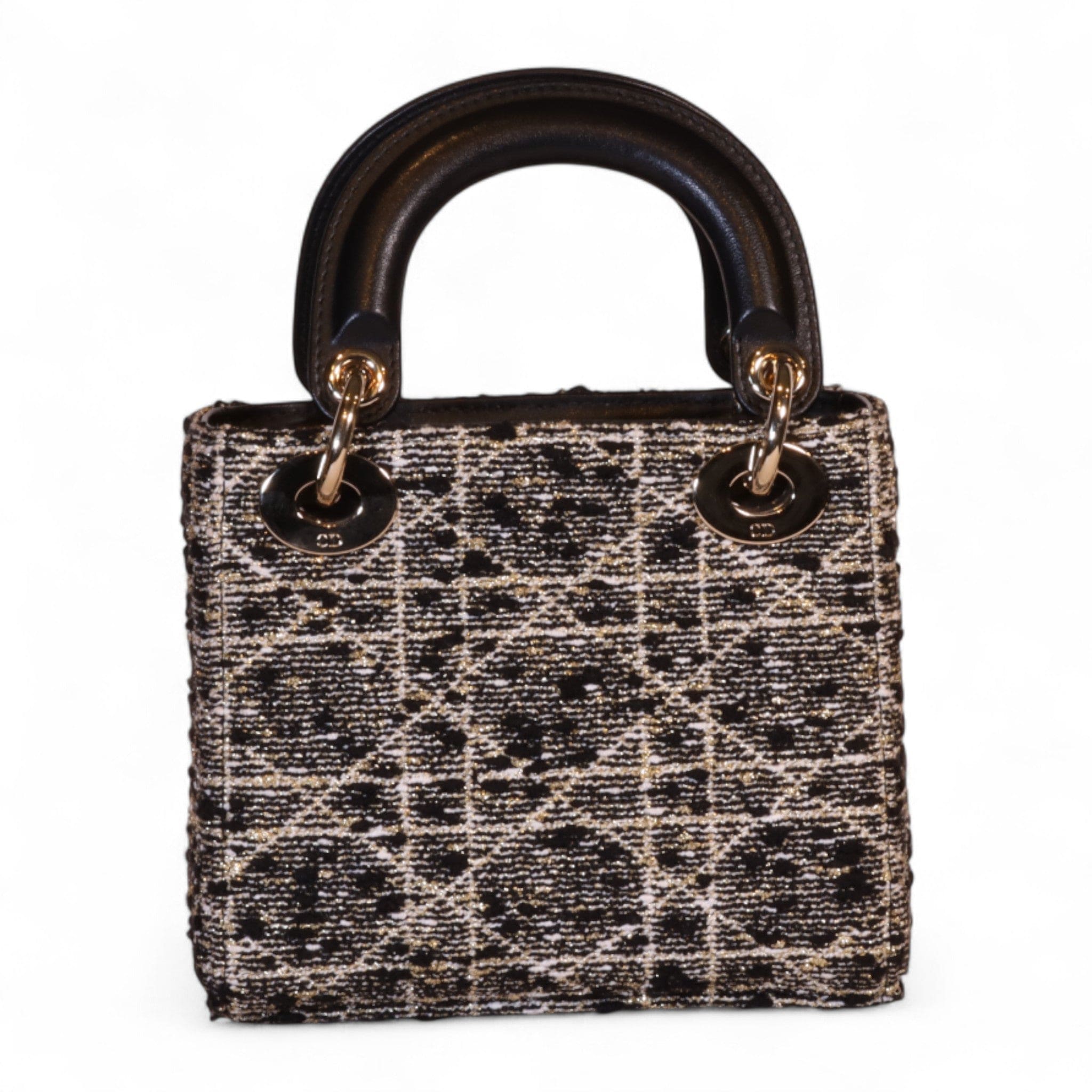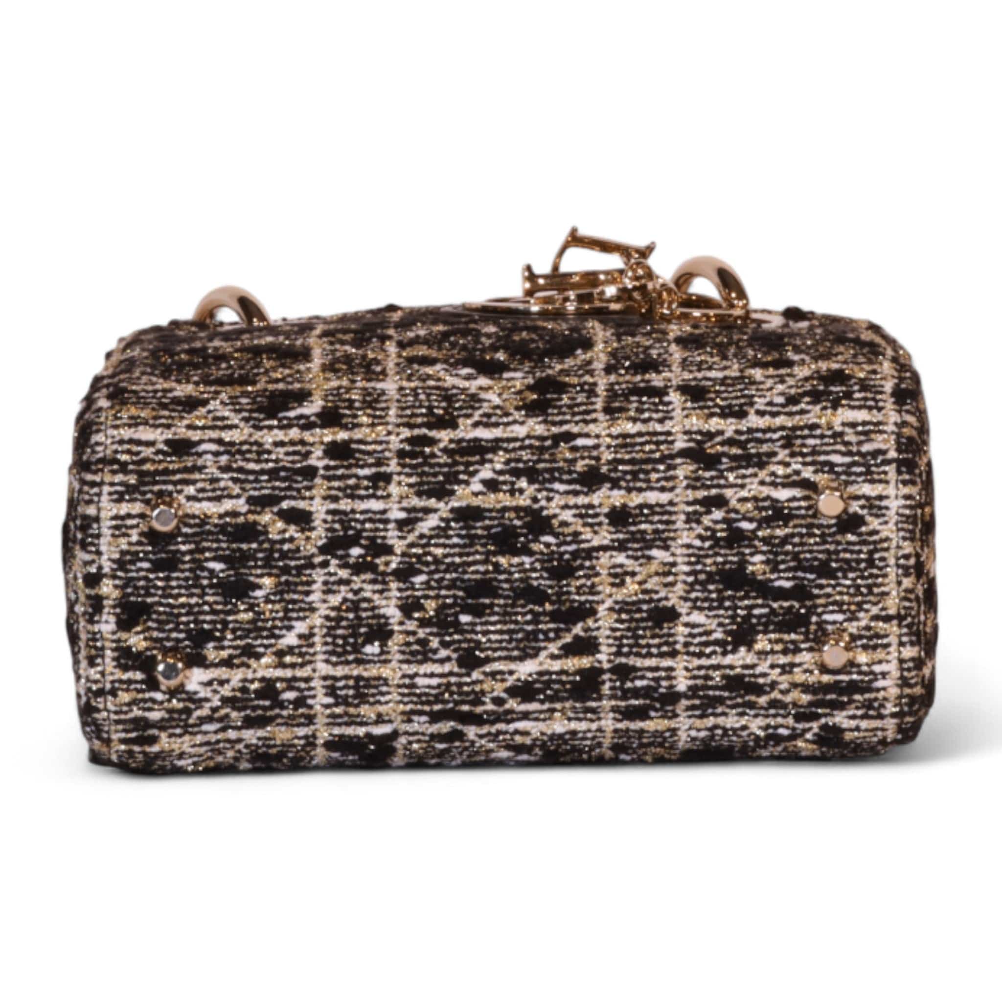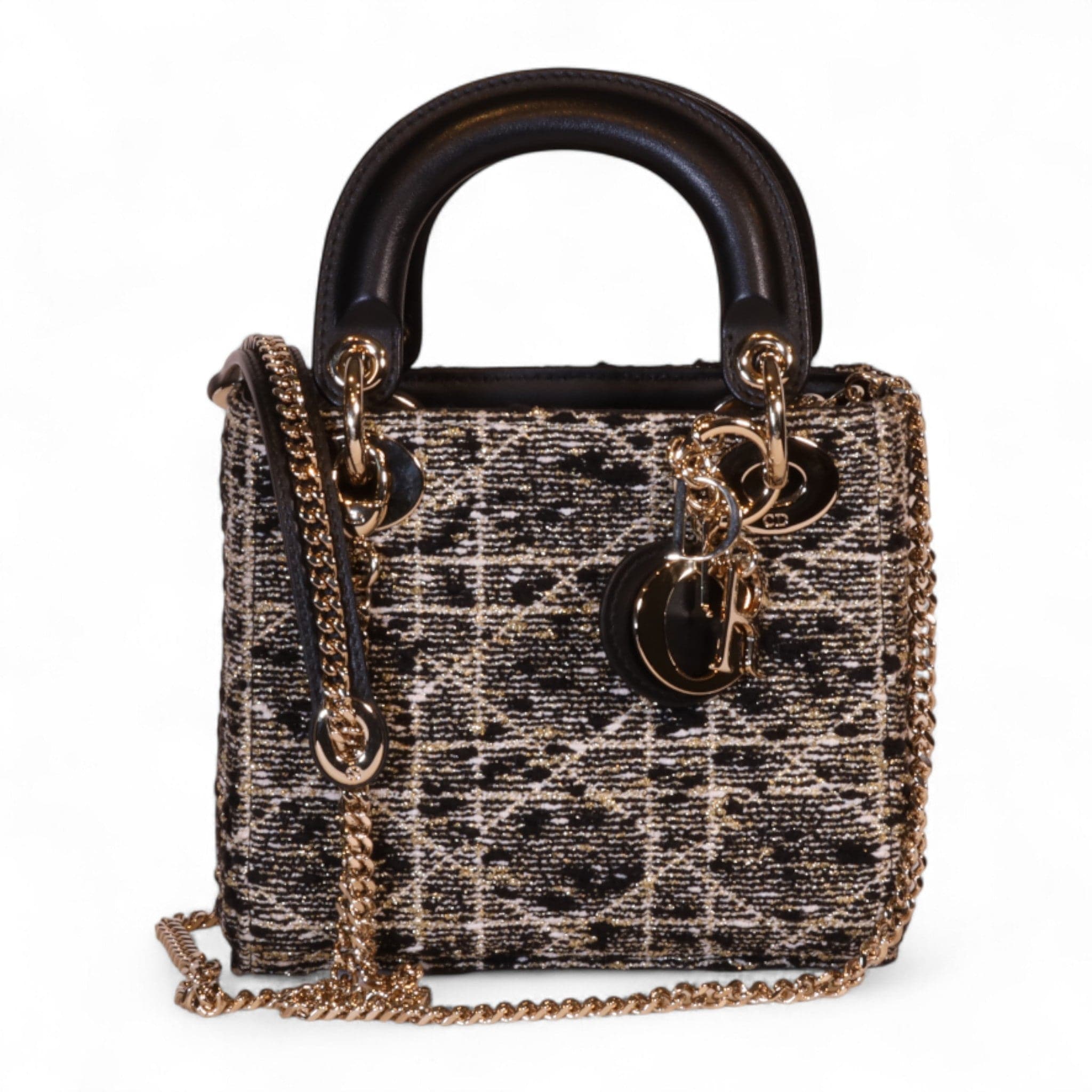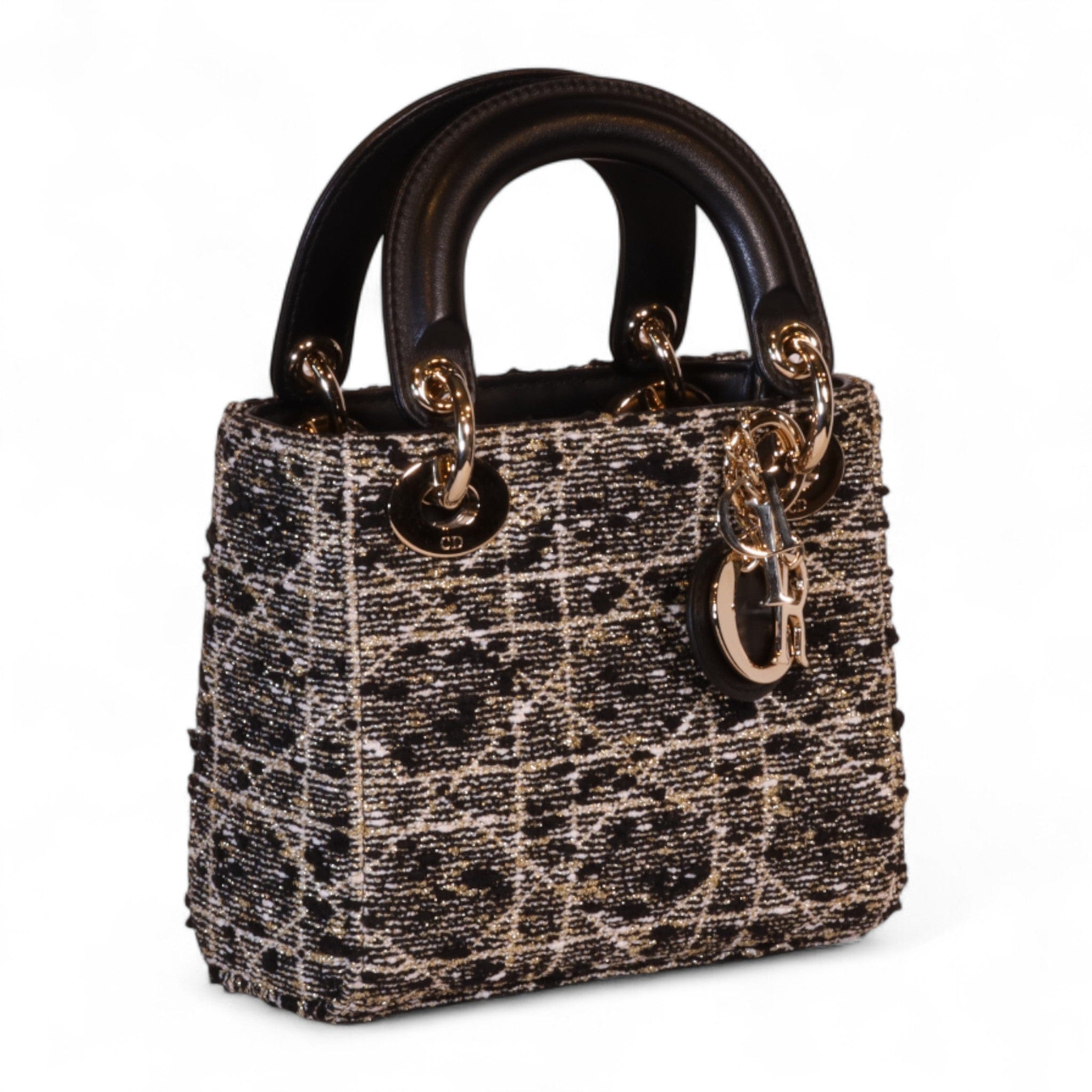 Christian Dior Mini Lady Dior In Tweed & Gold Cannage Silver Hardware
