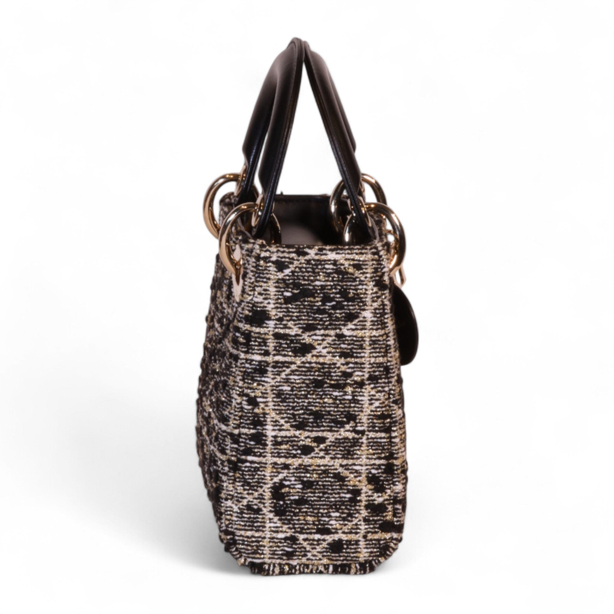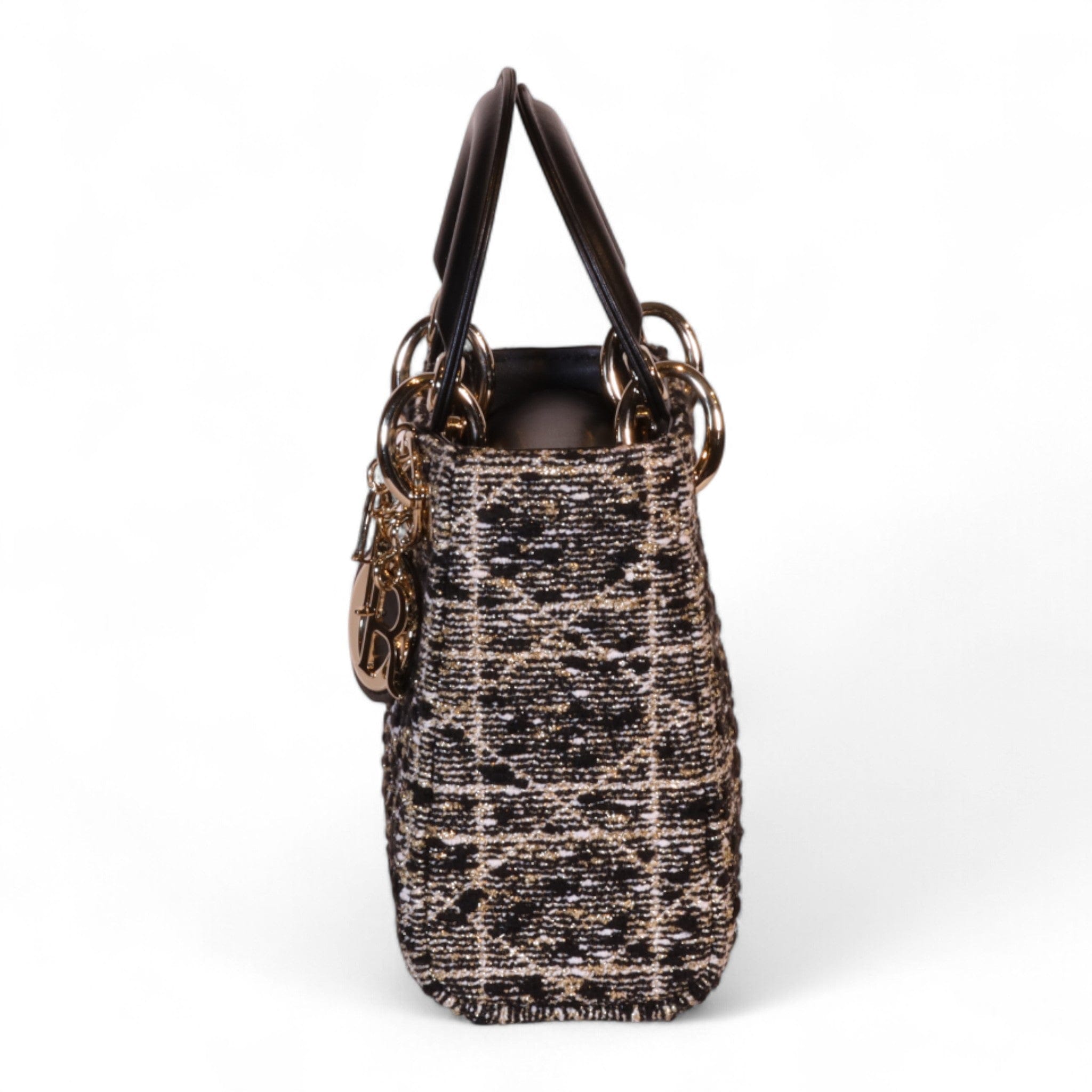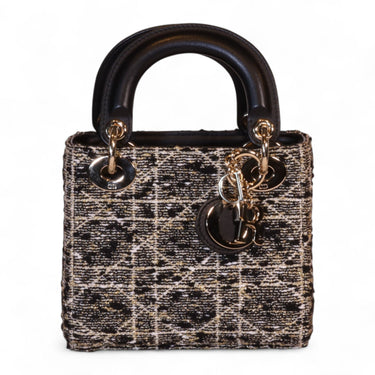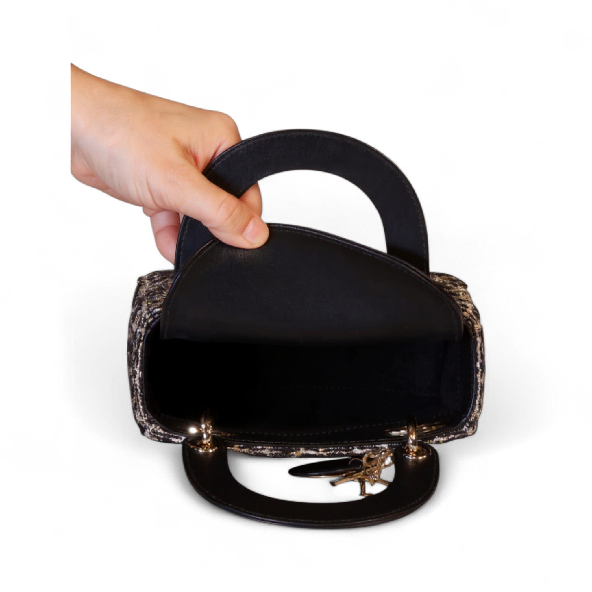 Christian Dior Mini Lady Dior In Tweed & Gold Cannage Silver Hardware
