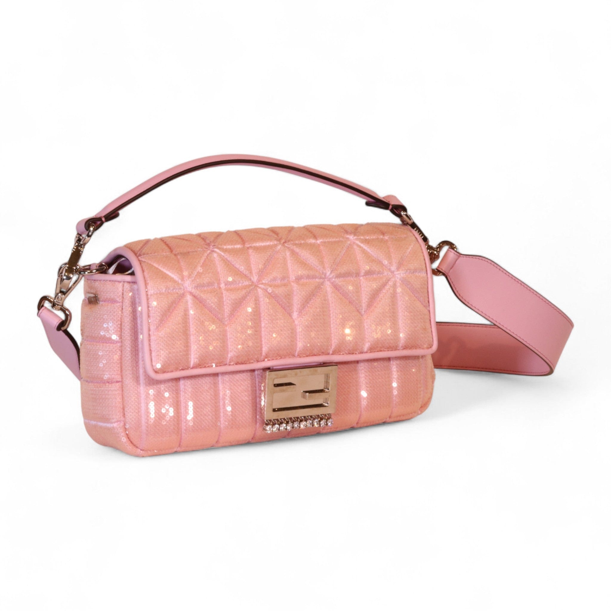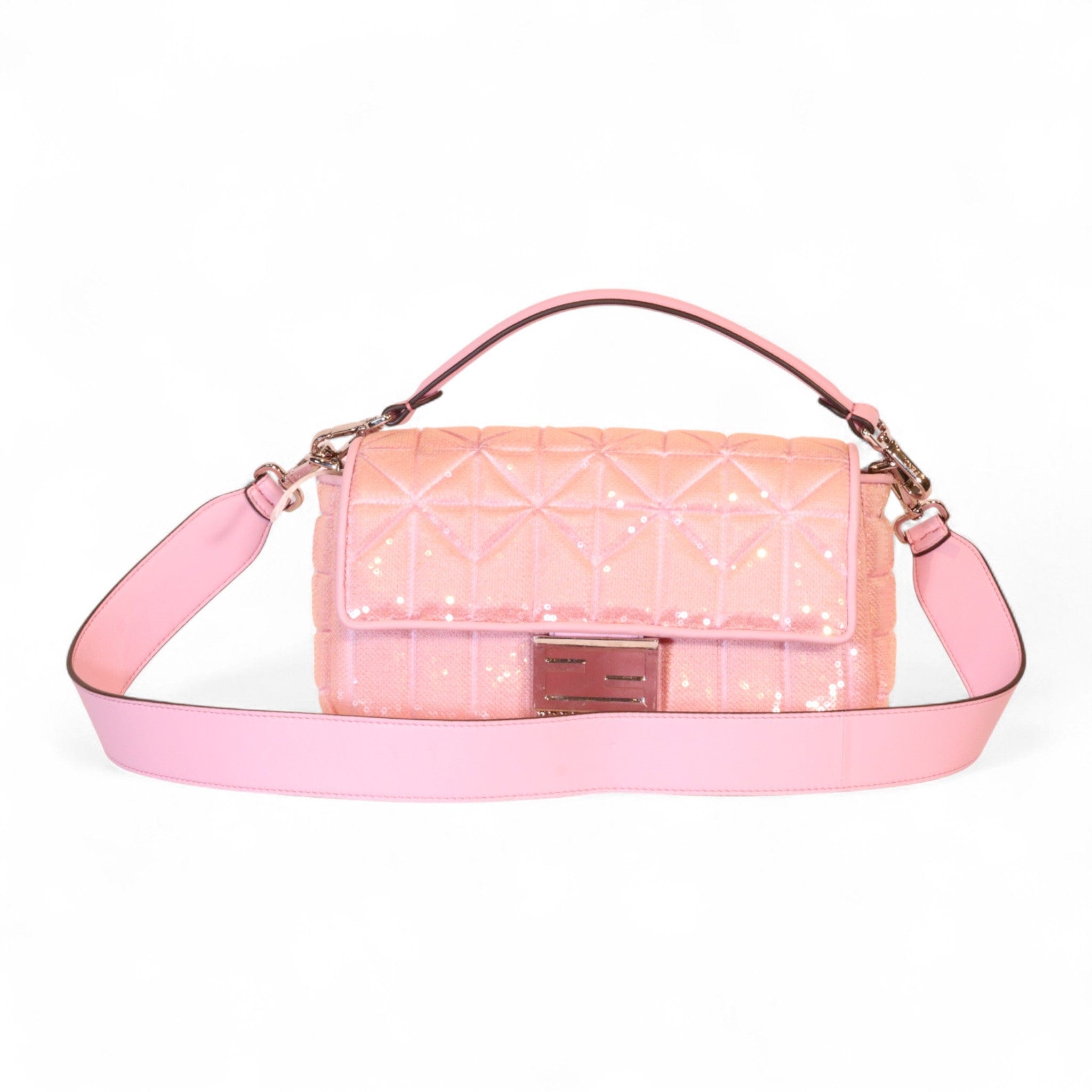 Fendi Pink Quilted Sequins Baguette