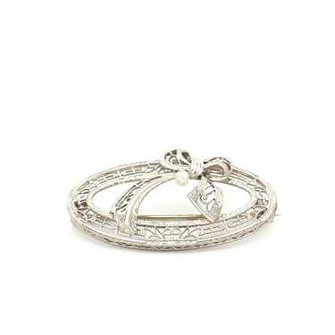 Add a touch of vintage charm and sophistication to your ensemble with this beautifully crafted silver filigree brooch. Featuring an intricate, openwork design, the brooch showcases delicate craftsmanship and detailed artistry. At its center, a single lustrous pearl adds a refined focal point, enhancing the overall elegance of the piece.