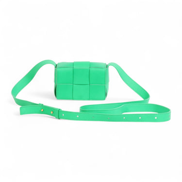 Discover understated luxury with the Bottega Veneta Intrecciato Mini Cassette in a vibrant green hue. Crafted with the brand’s signature woven Intrecciato technique, this compact yet versatile bag exudes elegance and craftsmanship. Its sleek, boxy silhouette features a minimalist design with a magnetic closure, offering a chic and practical accessory for both day and evening wear. The rich green color adds a fresh, modern touch to any outfit, while the exquisite woven leather craftsmanship showcases Bottega Veneta’s timeless commitment to quality. Elevate your style with this iconic and effortlessly sophisticated piece.