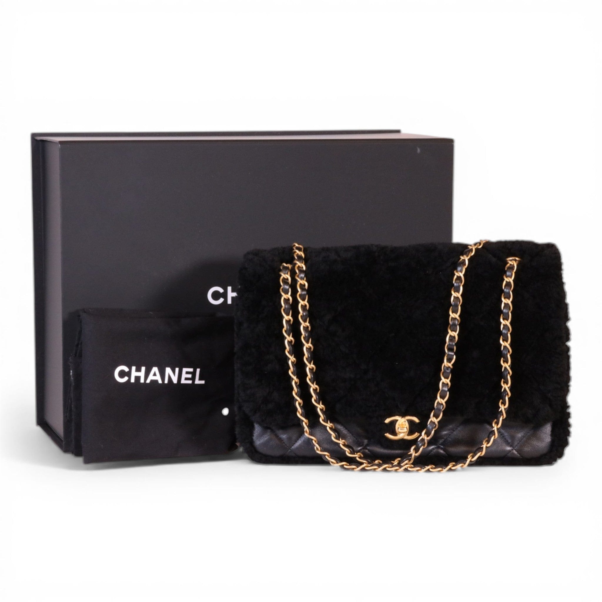 Chanel Black Shearling Lambskin Quilted Furry Coco Flap 2025