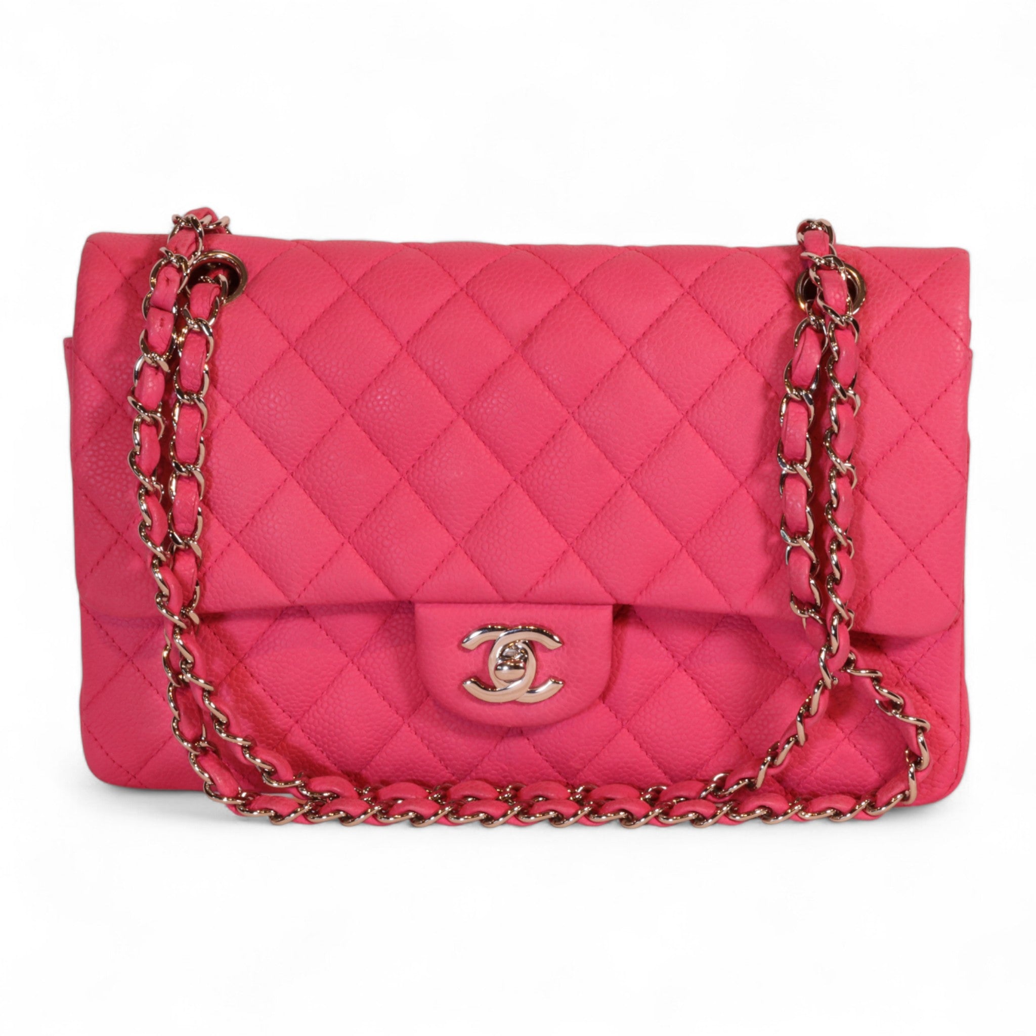 Chanel Classic Double Flap Pink Quilted Suede Caviar Shoulder Bag
