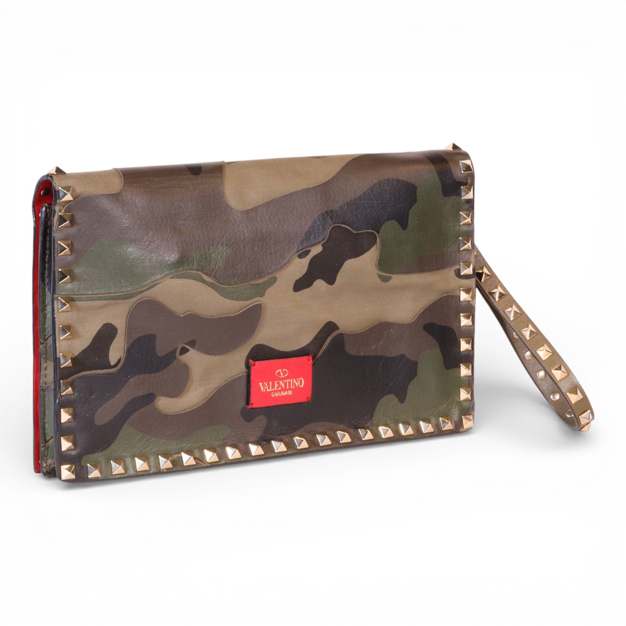 Valentino Garavani Camouflage Rockstud Wristlet Clutch